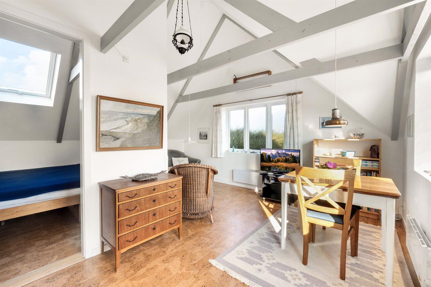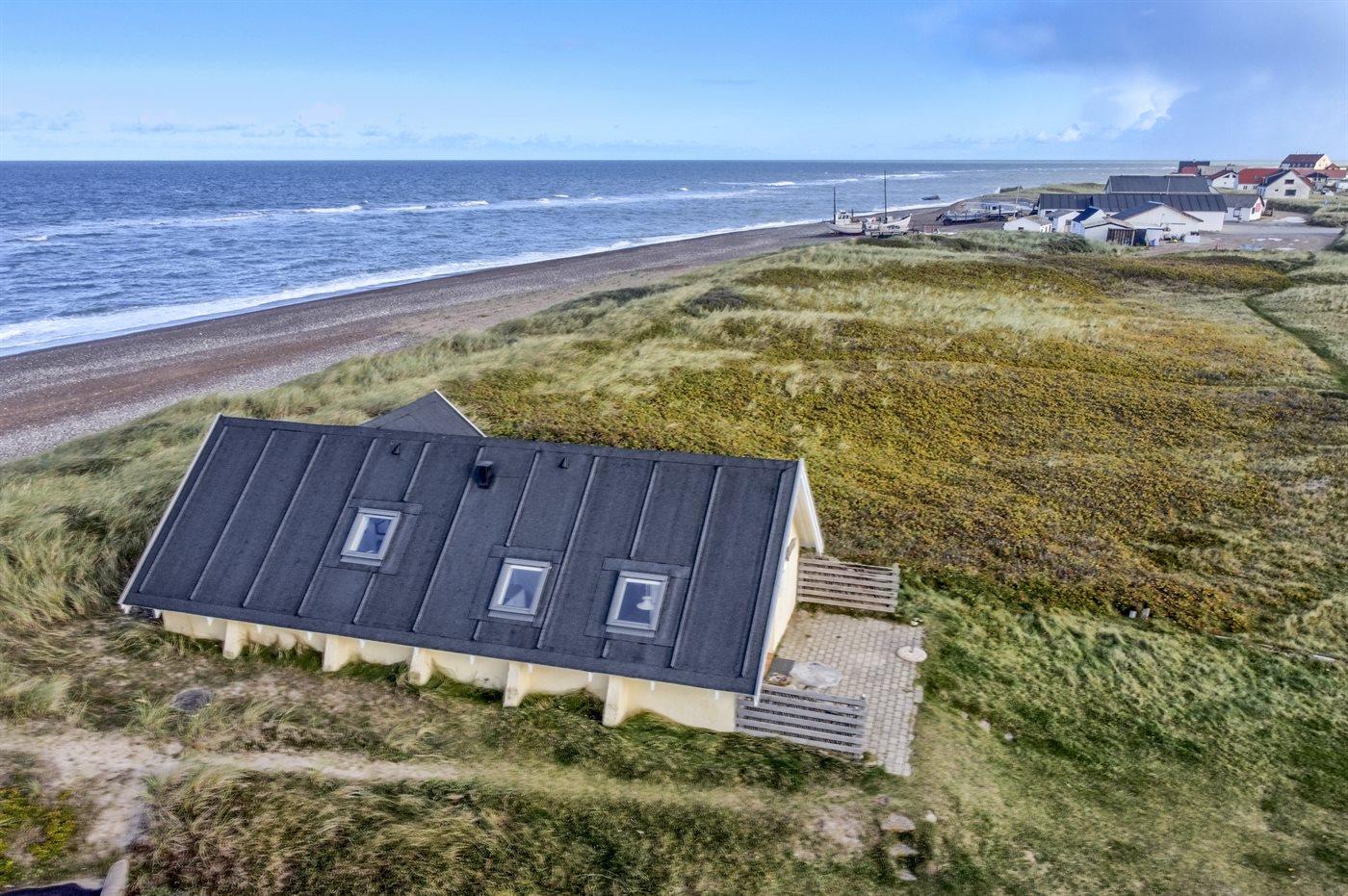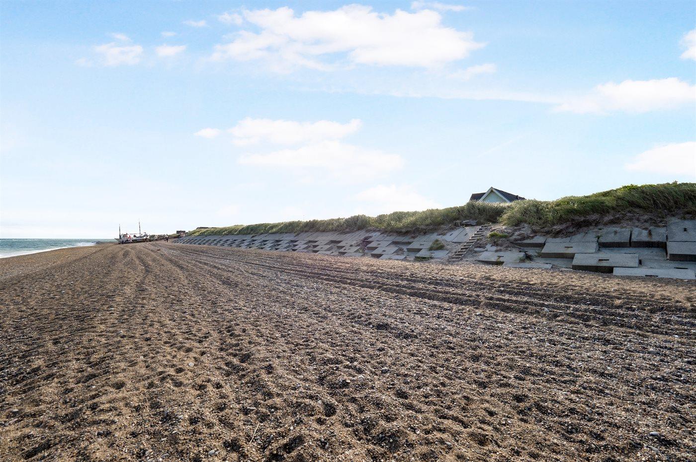 Kun et stenkast fra stranden ligger dette pæne sommerhus - på en stor klitgrund.