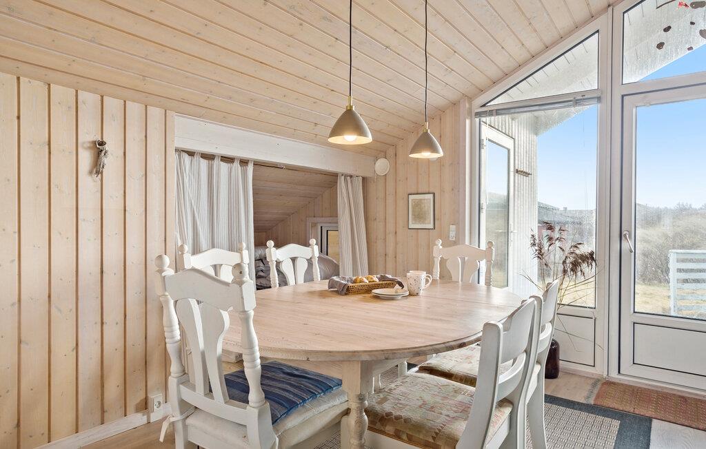Sæt hverdagen på pause og nyd nogle dejlige dage, hvor I kan kan trække stikket fra travlheden. Dette velindrettede sommerhus giver jer en skøn og fredfyldt ramme om jeres tur til Nordjylland, hvor I har nem adgang til strand og smuk natur. Glæd jer til at slænge jer med bøger og film i sofaen, samles om brætspil eller fællessang til akkorder fra husets guitar. Alt efter årstid kan I hygge jer med ild i brændeovnen indenfor eller trække ud på terrassen, når vejret er lunt.