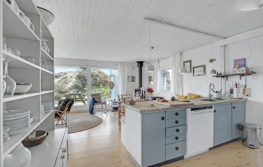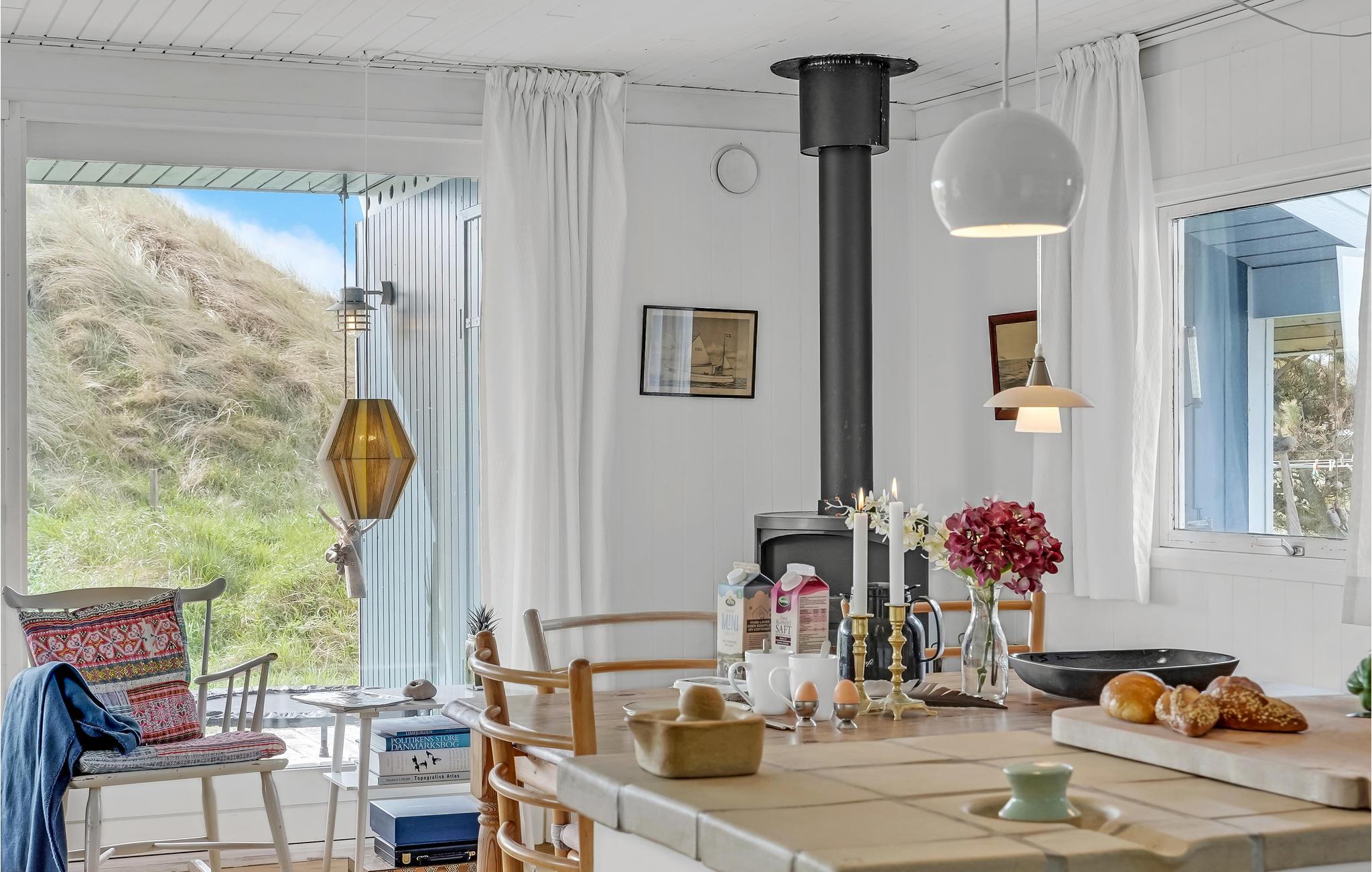 Hyggeligt træsommerhus i Lild tæt på havet med udsigt til klitter og moderne faciliteter.