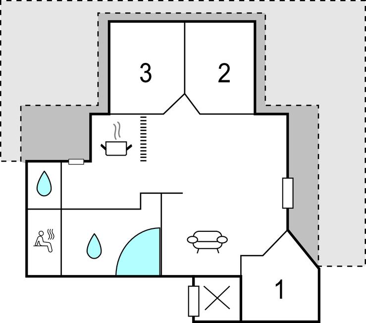 Badeværelse 8m2 (nr. 1) - WC. Varmt og koldt vand. Bruser