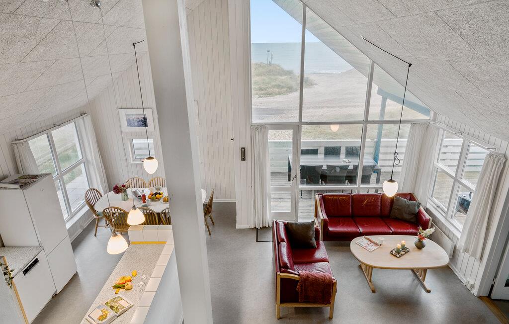 Et velindrettet sommerhus med en af Lild Strands bedste beliggenheder - I har fri udsigt lige til Vesterhavet. Nyd den smukke panoramaudsigt både fra den rummelige opholdsstue eller fra terrassen foran huset. Her har I virkelig muligheden for at se naturen fra dens mange fascinerende sider. Uanset vejret og årstid kan I gøre brug af husets egen wellnessafdeling: hop i swimmingpoolen, få undervandsmassage i spabadet og afslut med velgørende varme og afslapning i saunaen. Fra førstesalen har I ligeledes en utrolig flot udsigt over havet og klitterne. Her får I et rigtig godt sommerhus, der skaber de perfekte rammer for en ferie til en eller to familier. Velkommen!