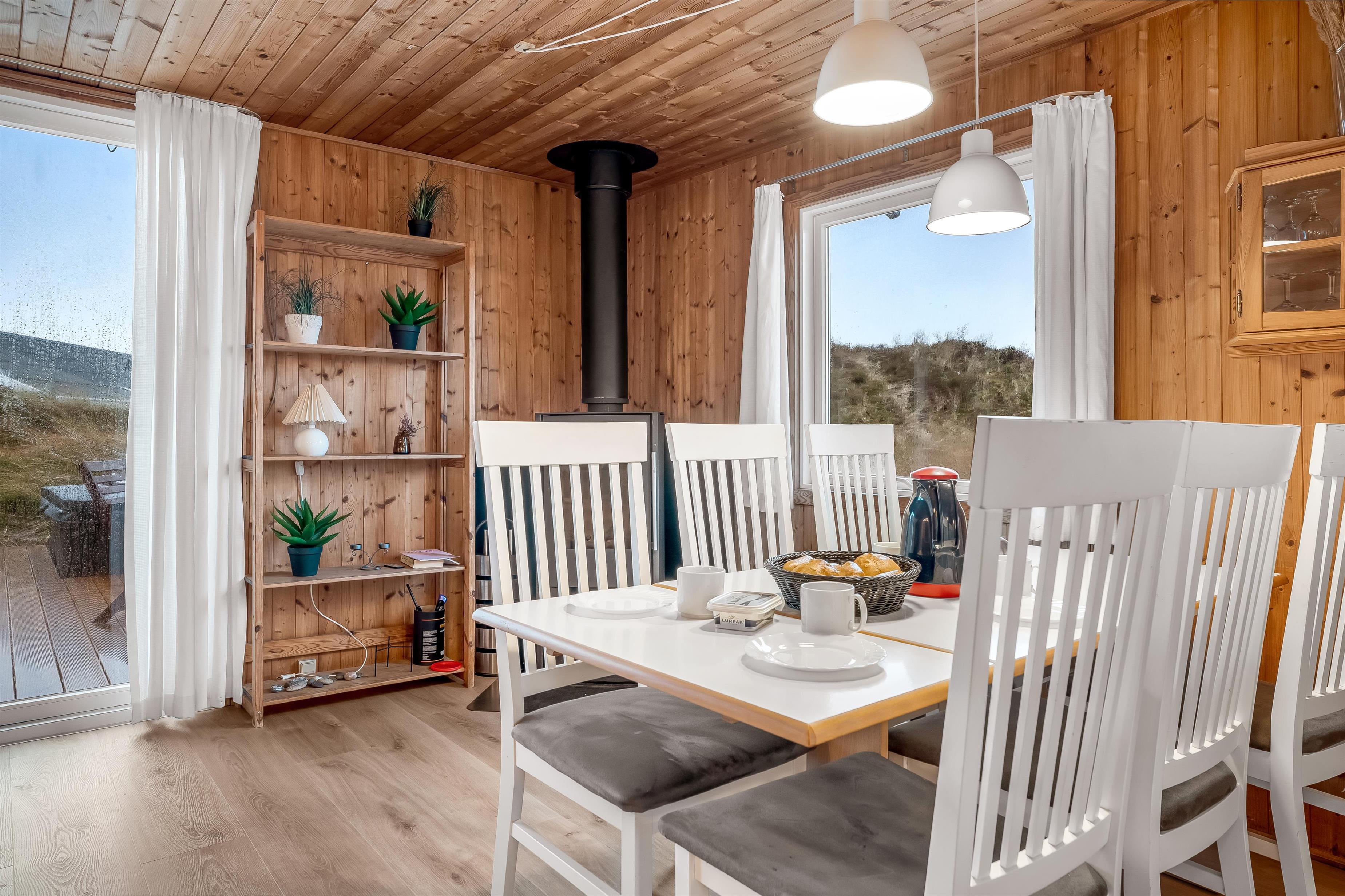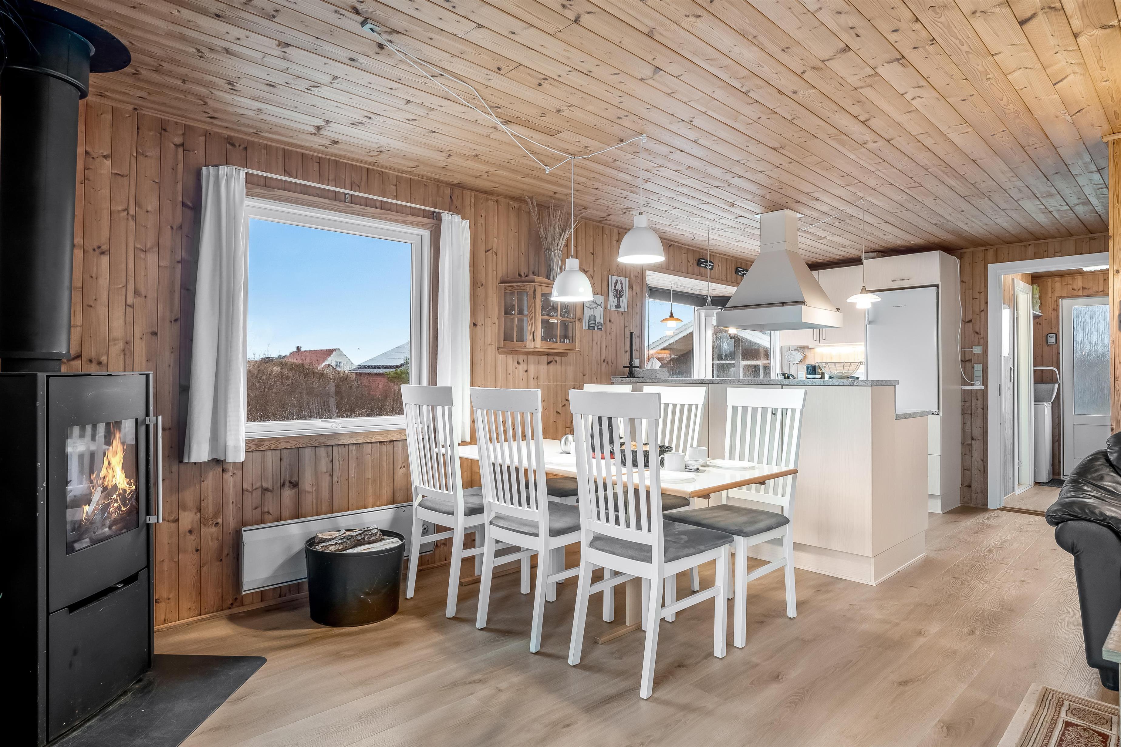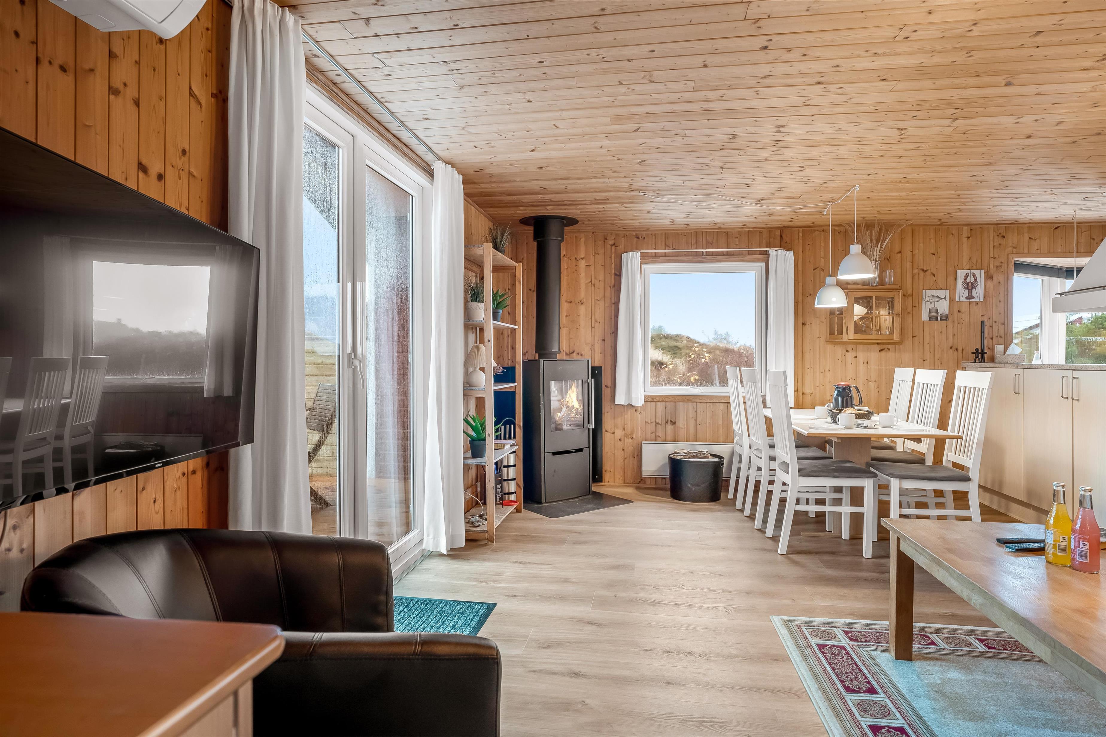 Når du træder ind i huset, vil du straks bemærke den varme og indbydende stemning. Stuen er udstyret med et fjernsyn, hvor du kan se både dansk og tysk TV. Med adgang til trådløst internet og Chromecast kan du nemt streame dine yndlingsprogrammer og film. Den brændeovn, der findes i stuen, skaber en hyggelig atmosfære på de køligere aftener, mens varmepumpen sørger for en behagelig temperatur året rundt.