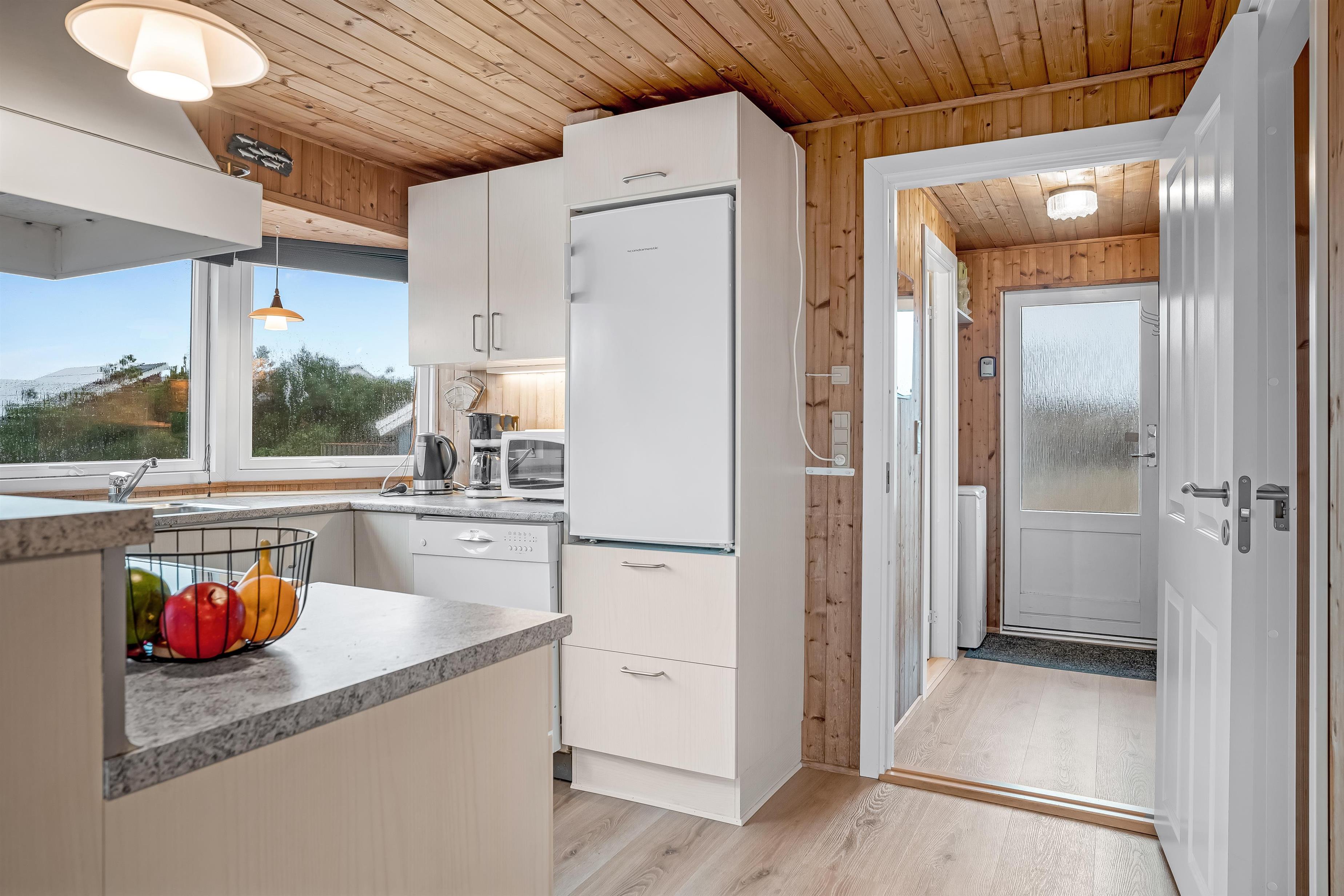 Køkkenet er fuldt udstyret med moderne apparater, herunder en mikrobølgeovn, ovn, keramisk komfur, opvaskemaskine, køleskab og fryser med plads til 20 liter. Du vil finde alt, hvad du behøver for at tilberede lækre måltider til dine kære. Der er også en praktisk vaskemaskine tilgængelig, så du kan holde dit tøj friskt under dit ophold. For dem, der elsker at grille, er der en grill til rådighed på den store terrasse, hvor du kan nyde lækre grillaftener i det fri.