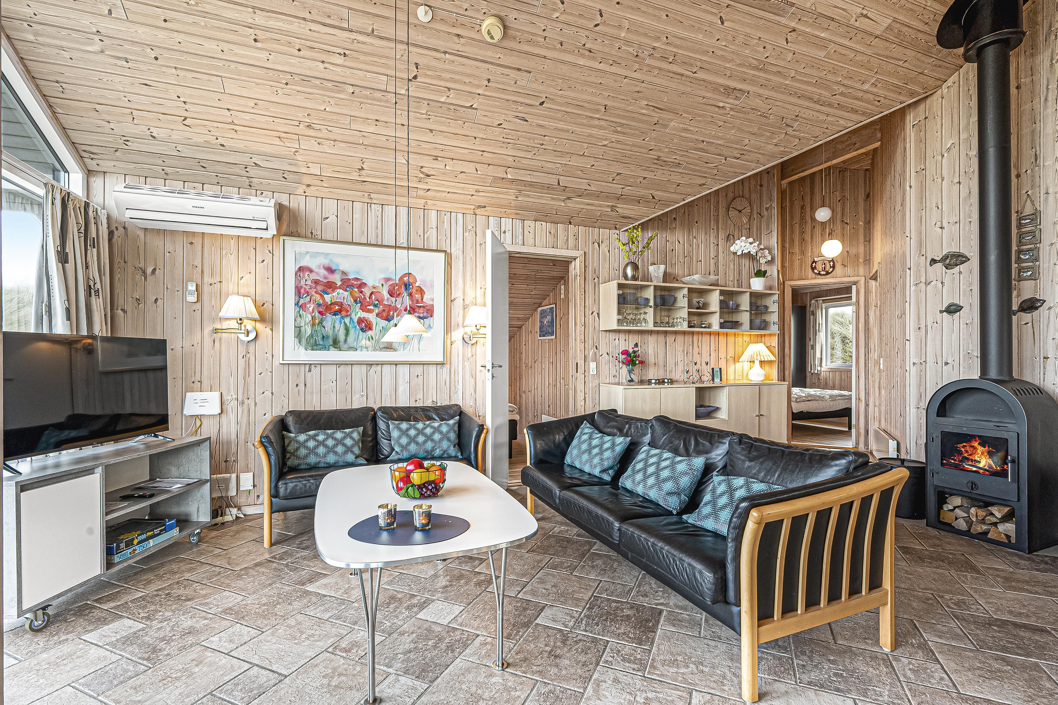 Feriehuset, bygget i 2006, tilbyder moderne komfort og varme takket være en energibesparende varmepumpe og gulvvarme i alle klinkegulve. Derudover er der en hyggelig brændeovn, perfekt til de kølige aftener. Huset har 4 soveværelser, hvoraf 3 er udstyret med dobbeltsenge og det sidste med en køjeseng. Der er også en barneseng og en barnestol til de mindste gæster.