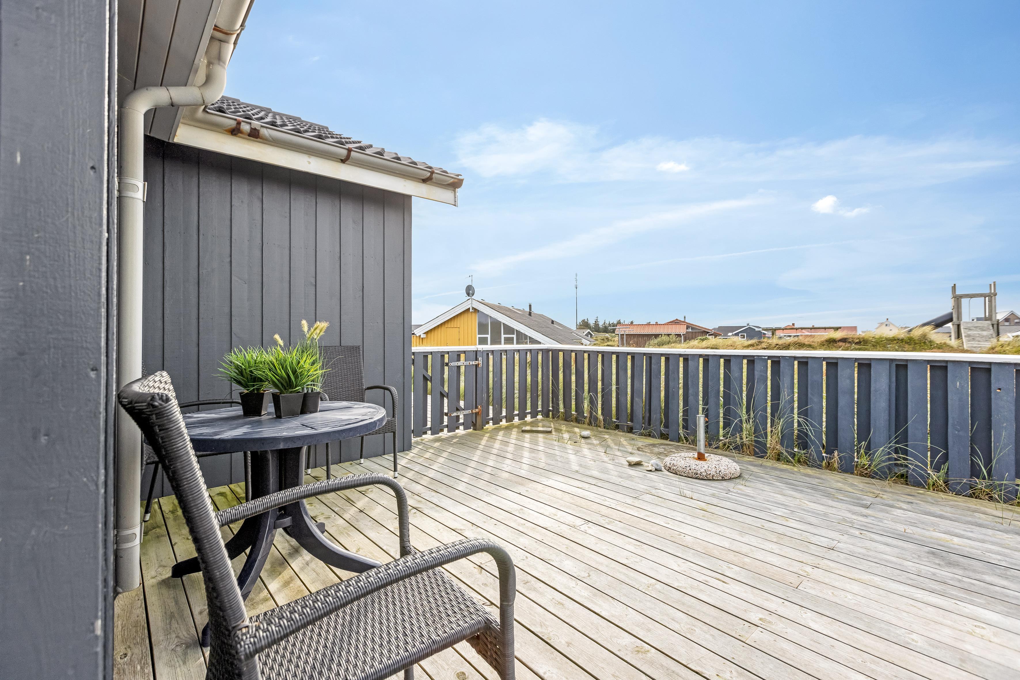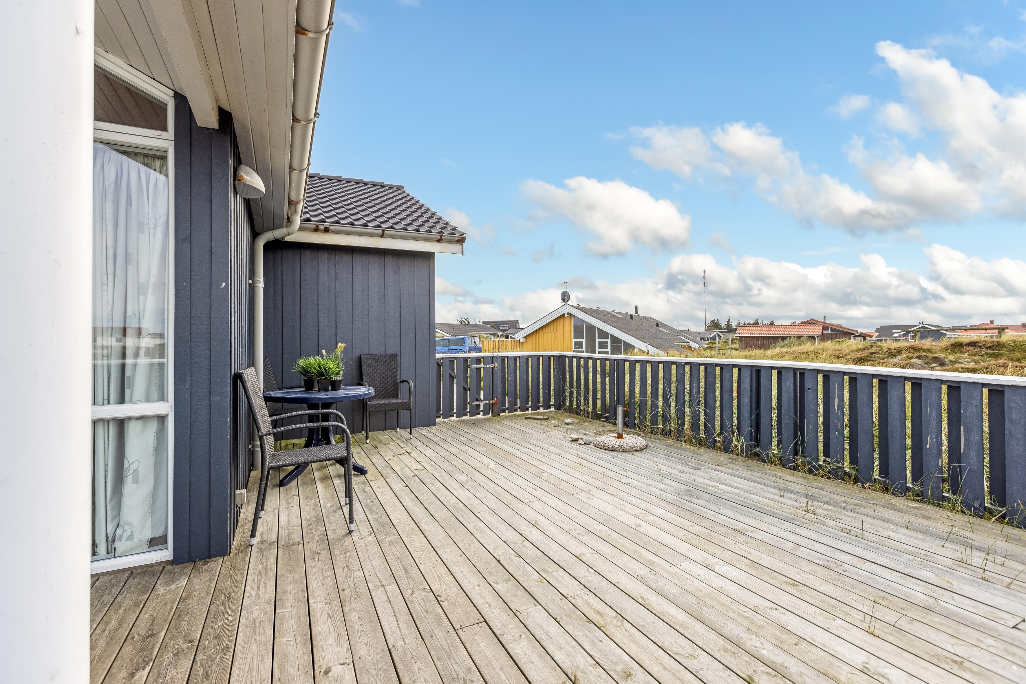 Sommerhuset ligger på en 800 kvadratmeter stor naturgrund, blot 200 meter fra havet. Her finder I en stor terrasse på 90 kvadratmeter, samt en overdækket terrasse på 70 kvadratmeter – perfekt til at nyde både solen og skyggen. Der er også en gynge til børnene og gode parkeringsmuligheder ved huset.