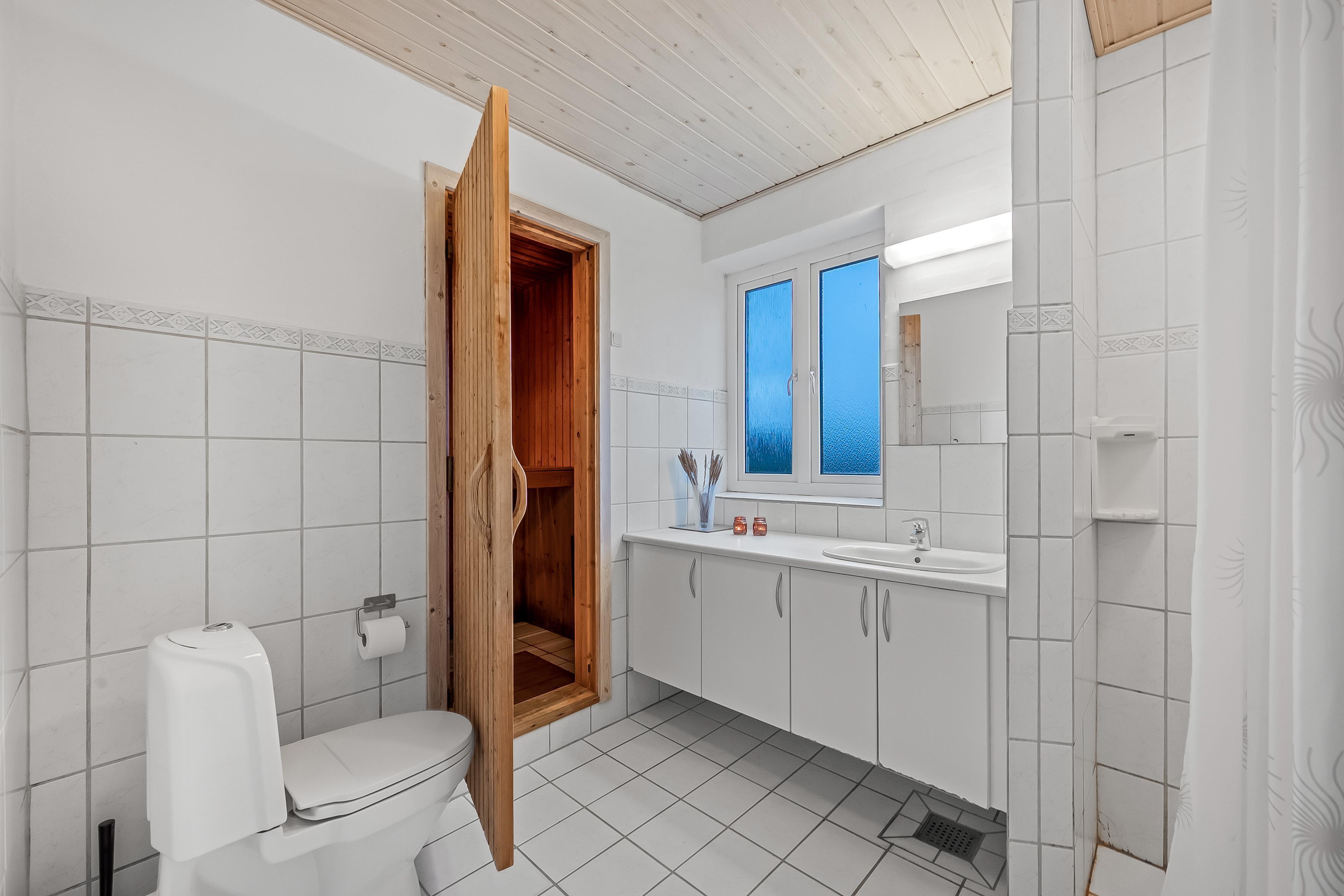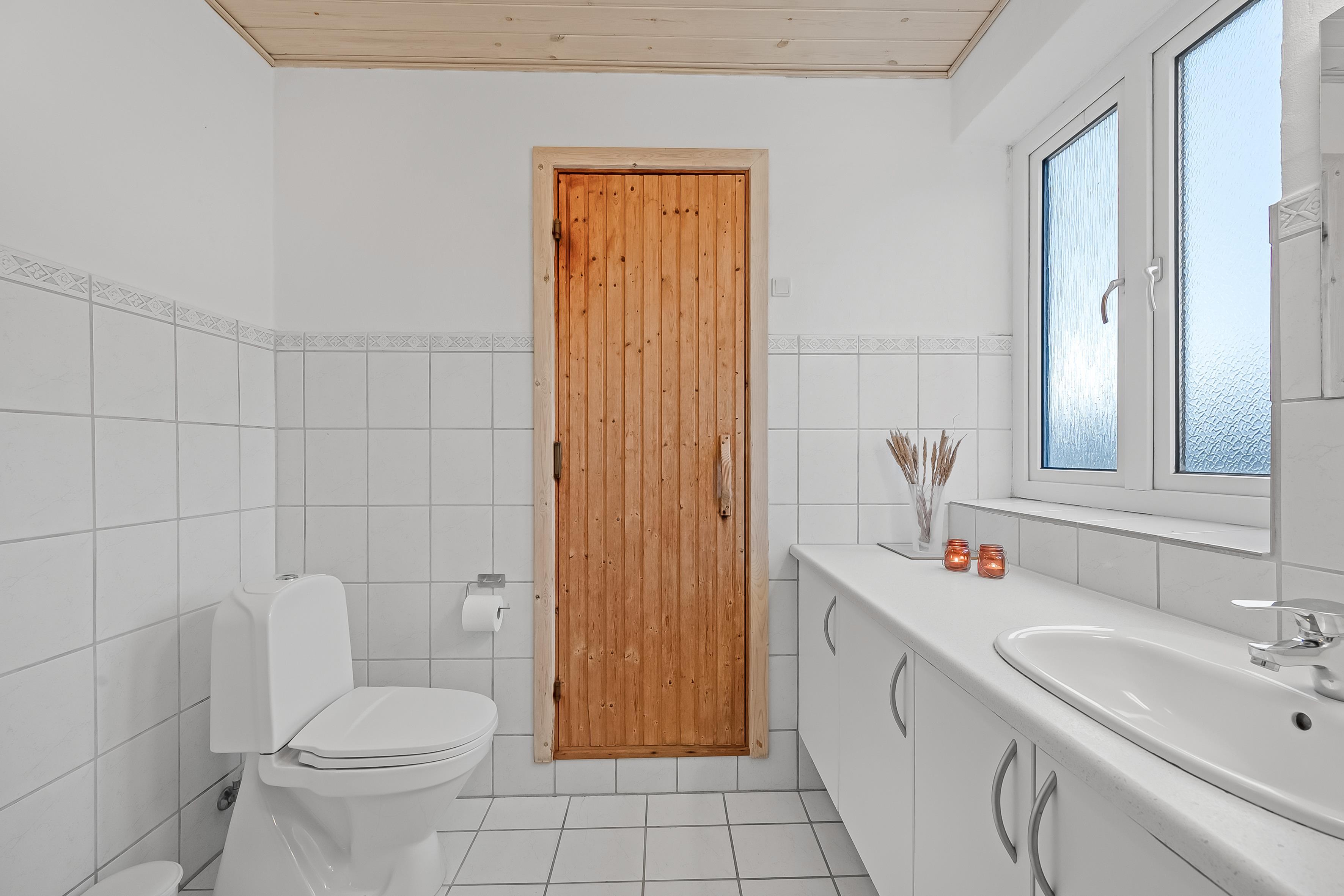 Sommerhusets to moderne badeværelser er med bruseniche, gulvvarme og toilet, og i saunaen kan I finde den ultimative afslapning. Derudover er der også et indendørs spa til fire personer – perfekt efter en lang dag med udflugter.