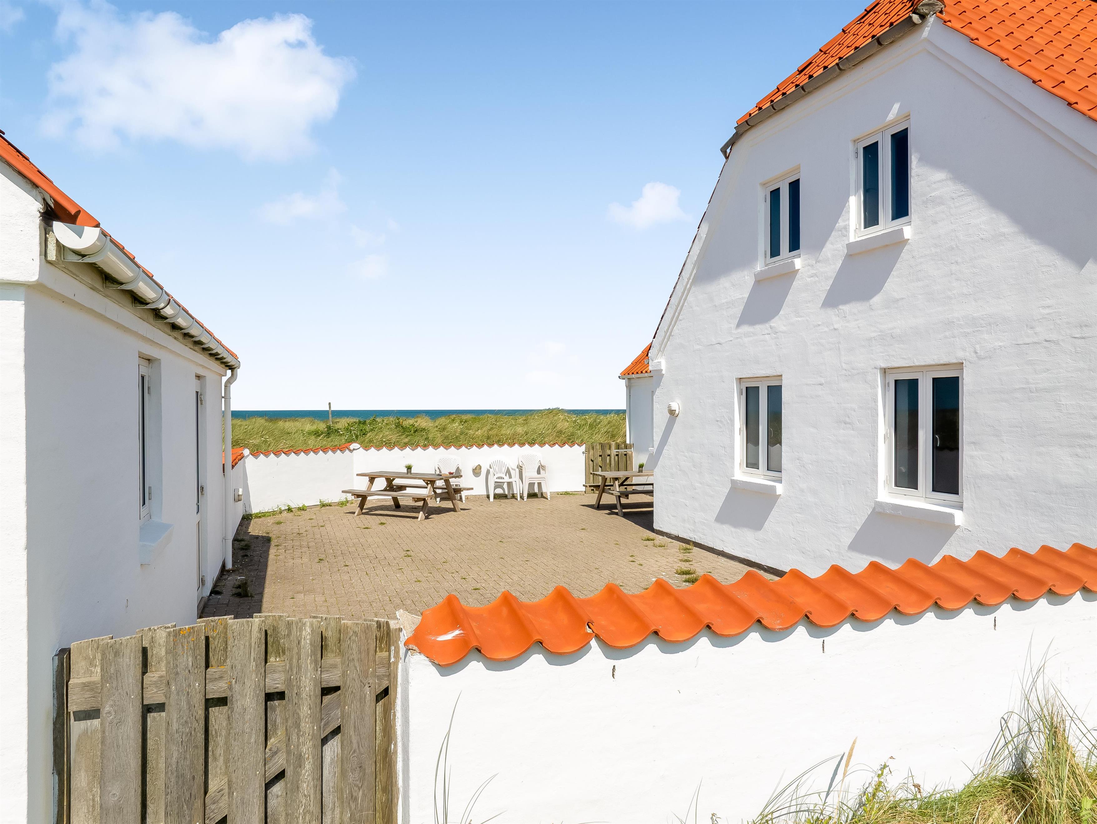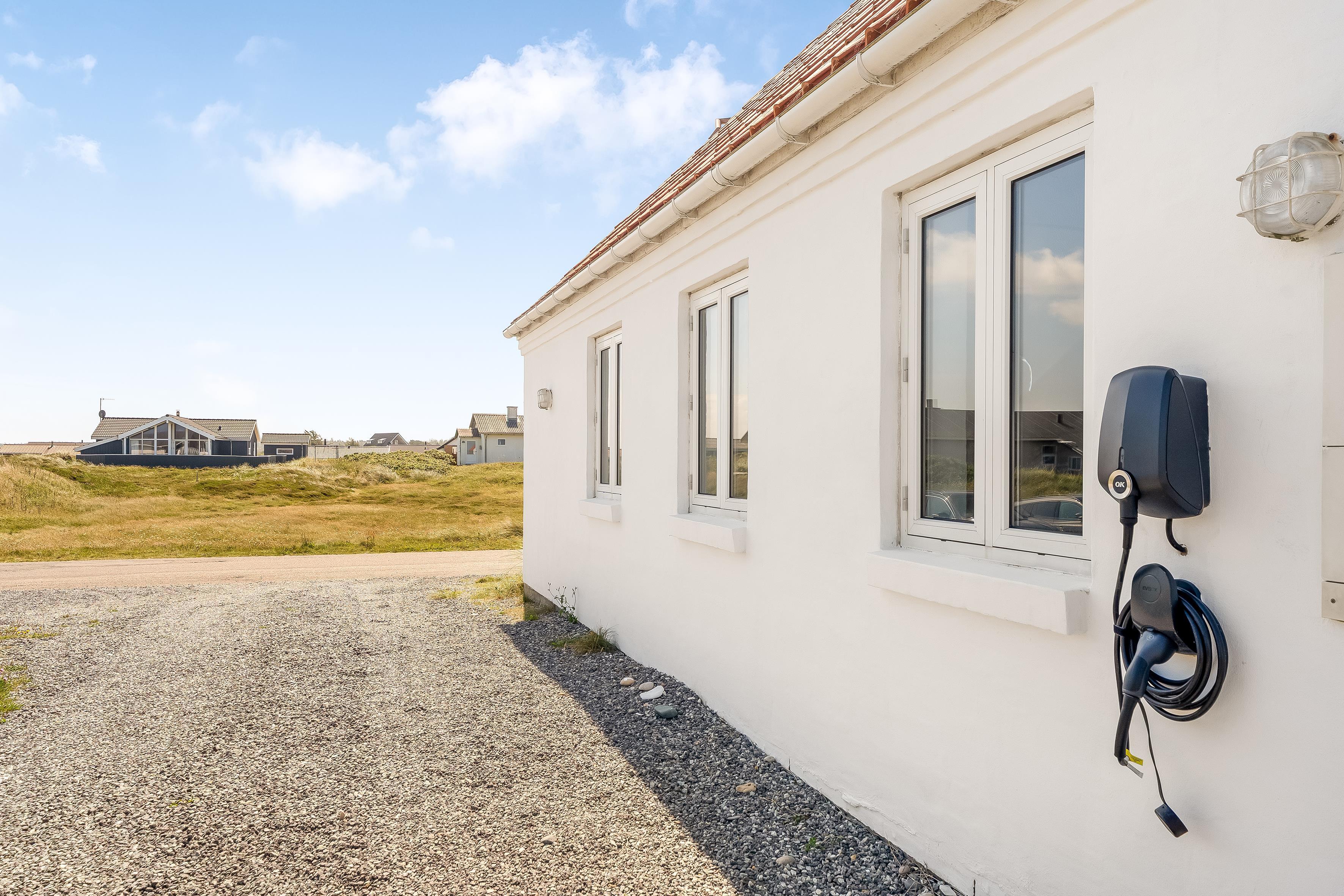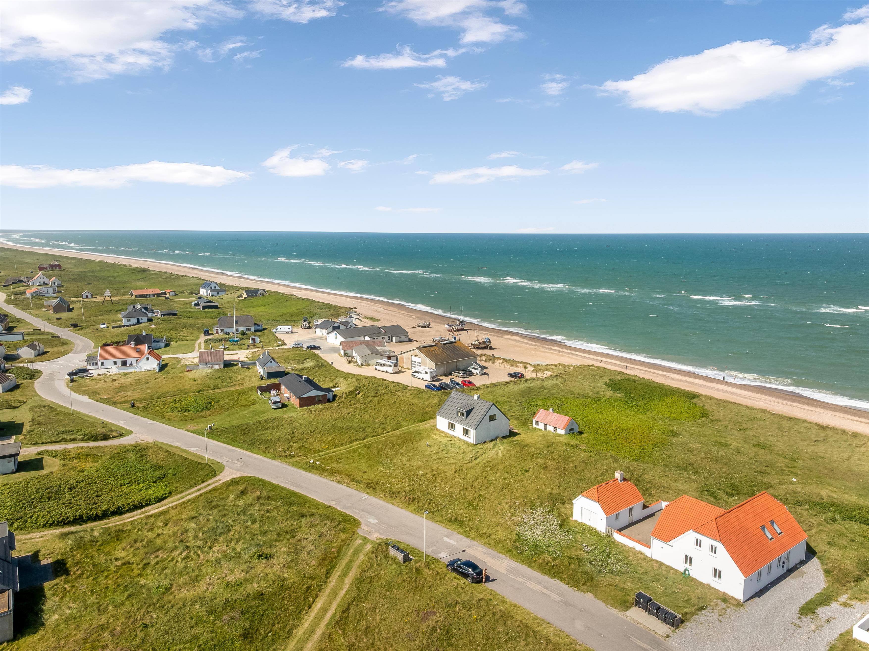 Huset ligger på en stor 1500 kvadratmeter naturgrund, kun 50 meter fra havet, hvor du kan nyde den friske havluft og bølgernes beroligende lyd. Der er en rummelig terrasse på 130 kvadratmeter og praktiske faciliteter, som opladning til elbil og parkering ved huset.