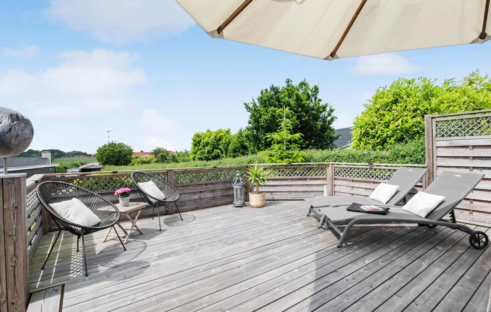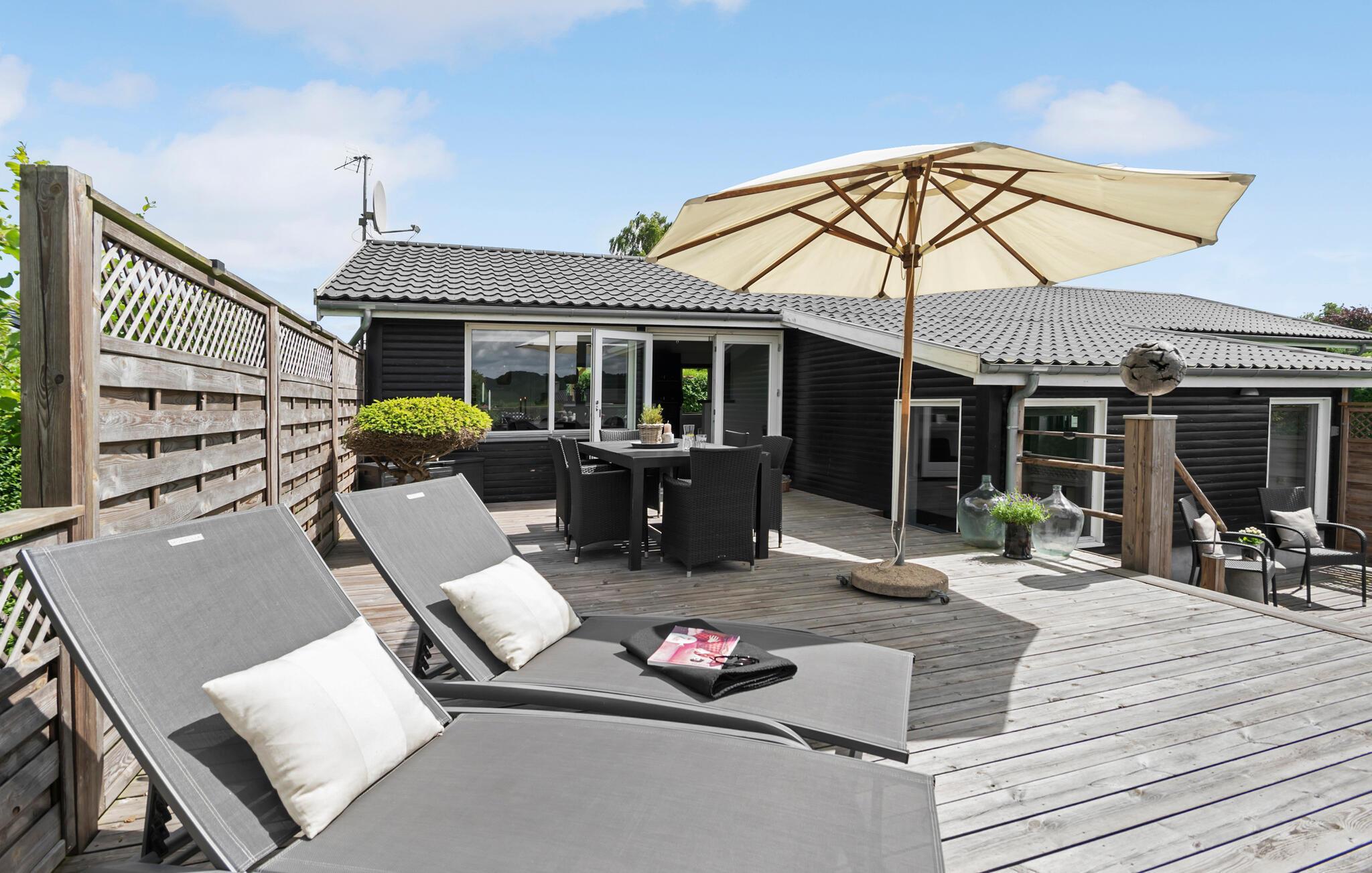 Viser vejret sig fra sin gode side, kan I nyde det ude på terrassen med komfortable havemøbler. Slå parasollen op og dæk bord til en lækker middag under stjernehimlen.