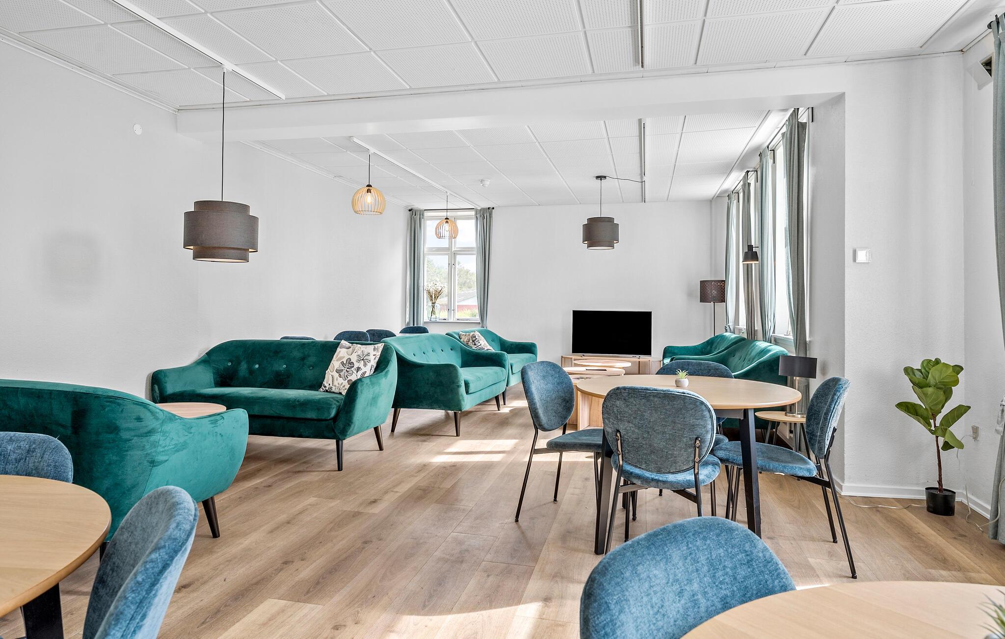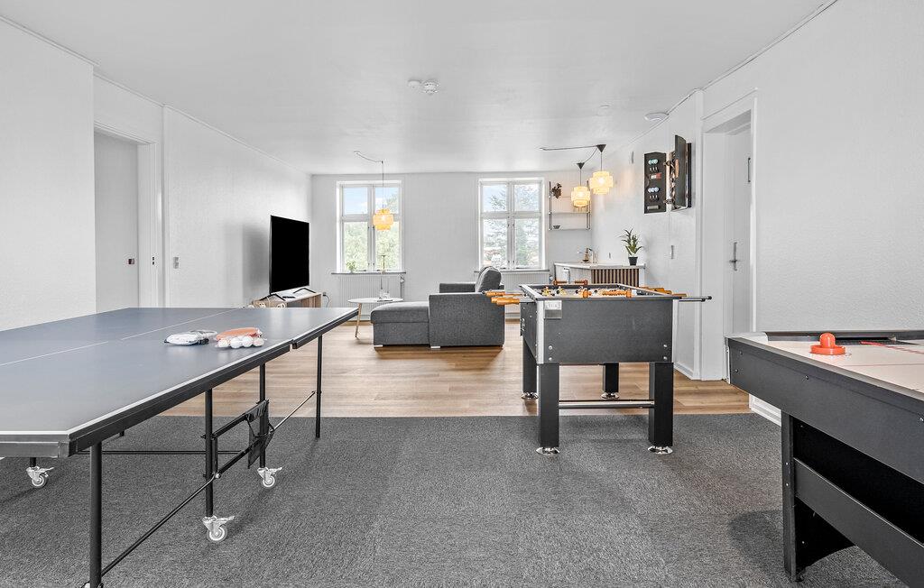 Om eftermiddagen kan I servere kaffe og kage på terrassen, mens børn og barnlige sjæle kan afprøve hoppepuden, de andre legeredskaberne eller måske lave en fodboldturnering. Der er også en masse sjove indendørs spil til rådighed i aktivitetsrummet. Hvis I vil ud og få lidt frisk luft til hovedet, kan I gå ture gennem den parklignende have og nyd roen. Vesterhavskysten ligger kun en kort køre væk, hvor I kan gå længere ture i skønne naturomgivelser.