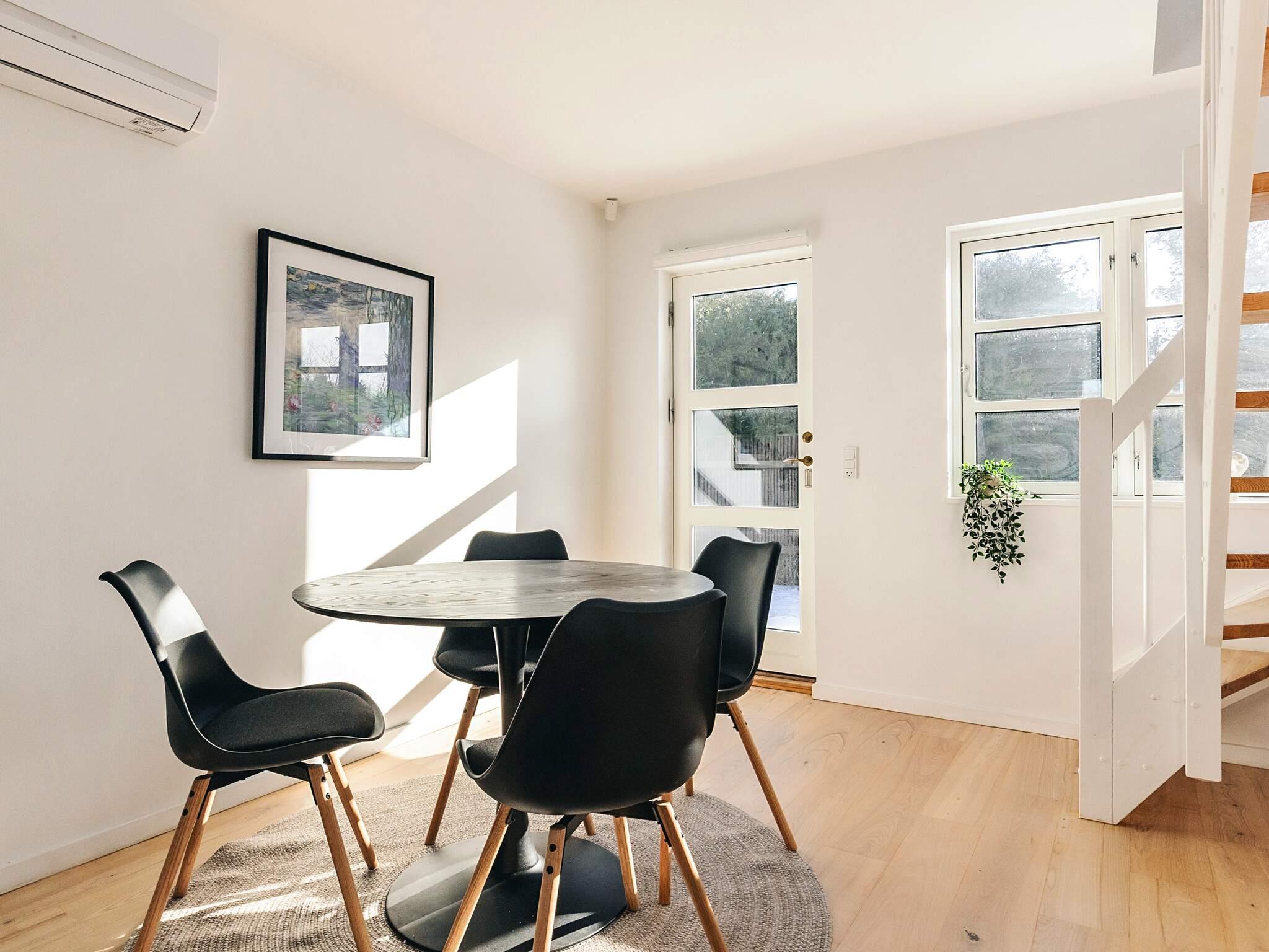 Dette charmerende byhus på 74 m² er et perfekt tilflugtssted for familier og kombinerer komfort og stil i rolige omgivelser. Huset blev bygget i 2004, er nyrenoveret og er klar til sine første gæster i midten af januar 2025. I stueetagen finder du et dejligt køkken/alrum med direkte adgang til en solrig terrasse, der er ideel til at nyde måltider eller slappe af i den friske luft. Den hyggelige tv-stue er et godt sted at slappe af, og det stilfulde, flisebelagte badeværelse tilføjer et strejf af luksus. På første sal er der et rummeligt soveværelse og et hyggeligt område med to enkeltsenge samt et smukt karnapvindue, der fører ud til en lille balkon.