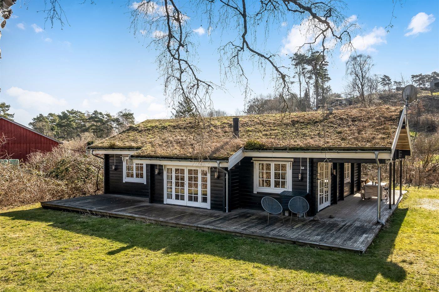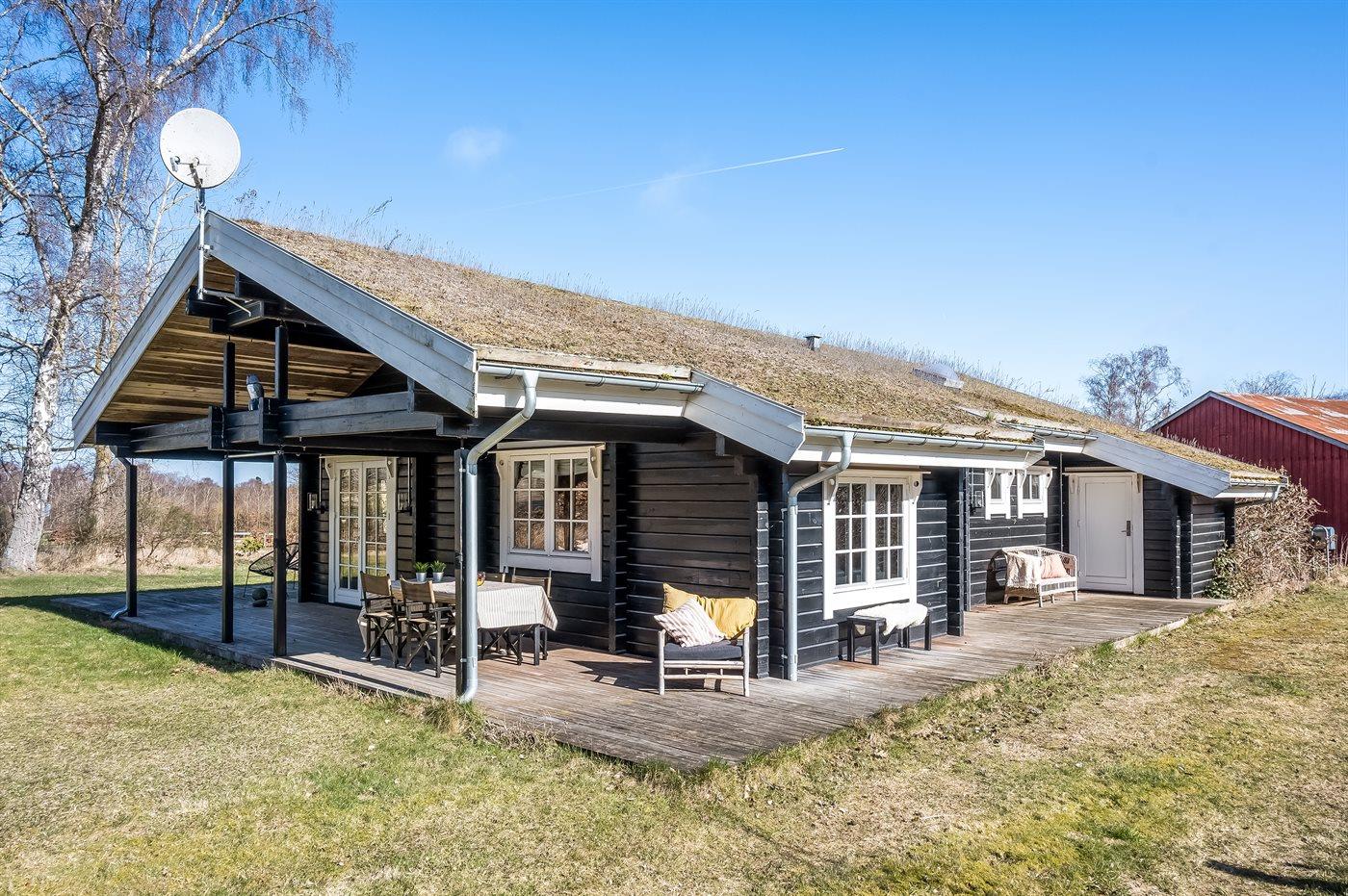 Hyggeligt sommerhus nær Liseleje med store terrasser og naturgrund til afslapning.