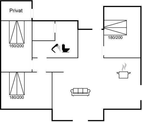 Der er i alt 3 soveværelser. Sovepladserne fordeler sig på: 6 sovepladser i dobbeltsenge.
