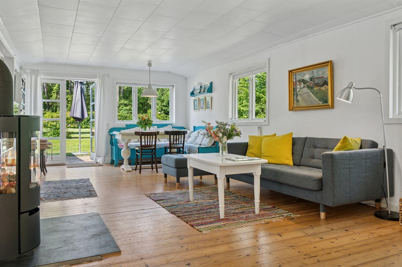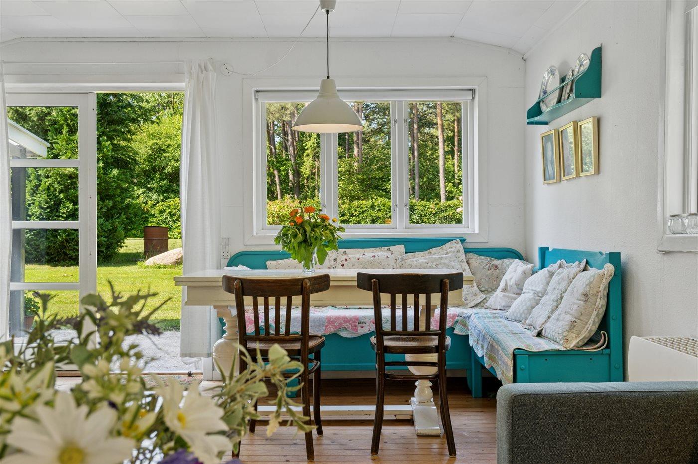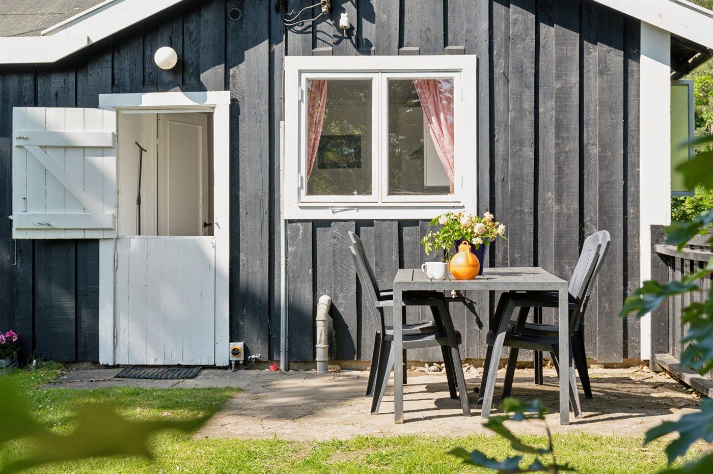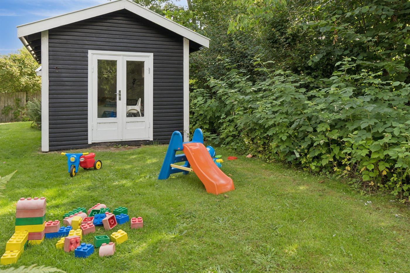 Grunden er indhegnet, hvilket gør det trygt for både børn og kæledyr at færdes frit. Sommerhuset er derfor også ideelt for børnefamilier, der ønsker en tryg og afslappende ferie i naturskønne omgivelser. Den store have indbyder til leg og aktiviteter – her er god plads til at spille både kroket og badminton.