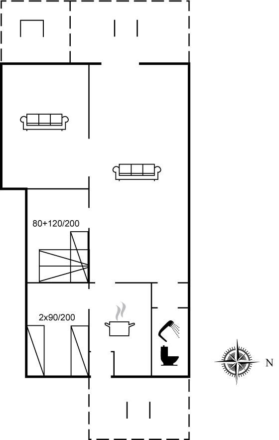 Der er i alt 2 soveværelser. Sovepladserne fordeler sig på: 2 sovepladser i enkeltsenge. 3 sovepladser i køjesenge.