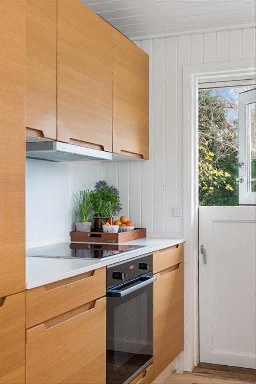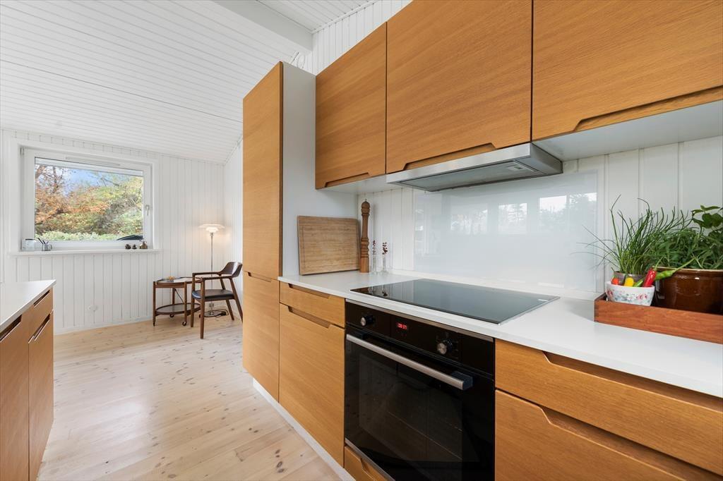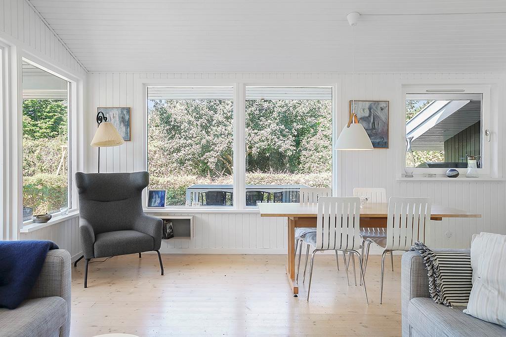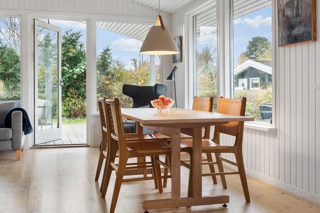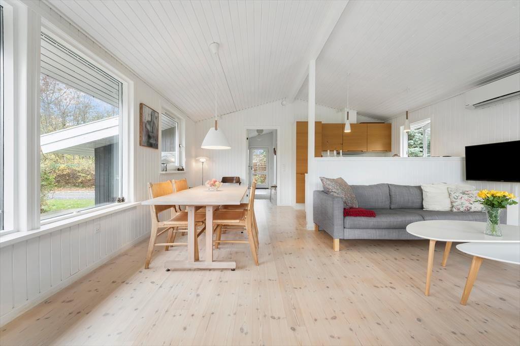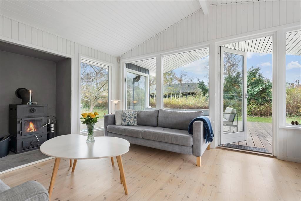 Dette nyrenoverede sommerhus byder dig velkommen med en lys og imødekommende atmosfære, hvor den nordiske stil danner rammen om en afslappende ferie for hele familien. Indretningen er gennemført med lyse farver og moderne komfort, og samspillet mellem opholdsstue og køkken skaber et naturligt samlingspunkt. Her kan I nyde en kop kaffe ved spisepladsen i forlængelse af det nye køkken eller læne jer tilbage i sofaen foran brændeovnen og lade roen sænke sig. Store vinduespartier og udgangen til terrassen inviterer naturen med ind i rummet, og gør det nemt at lade dagen glide ubesværet fra inde til ude.