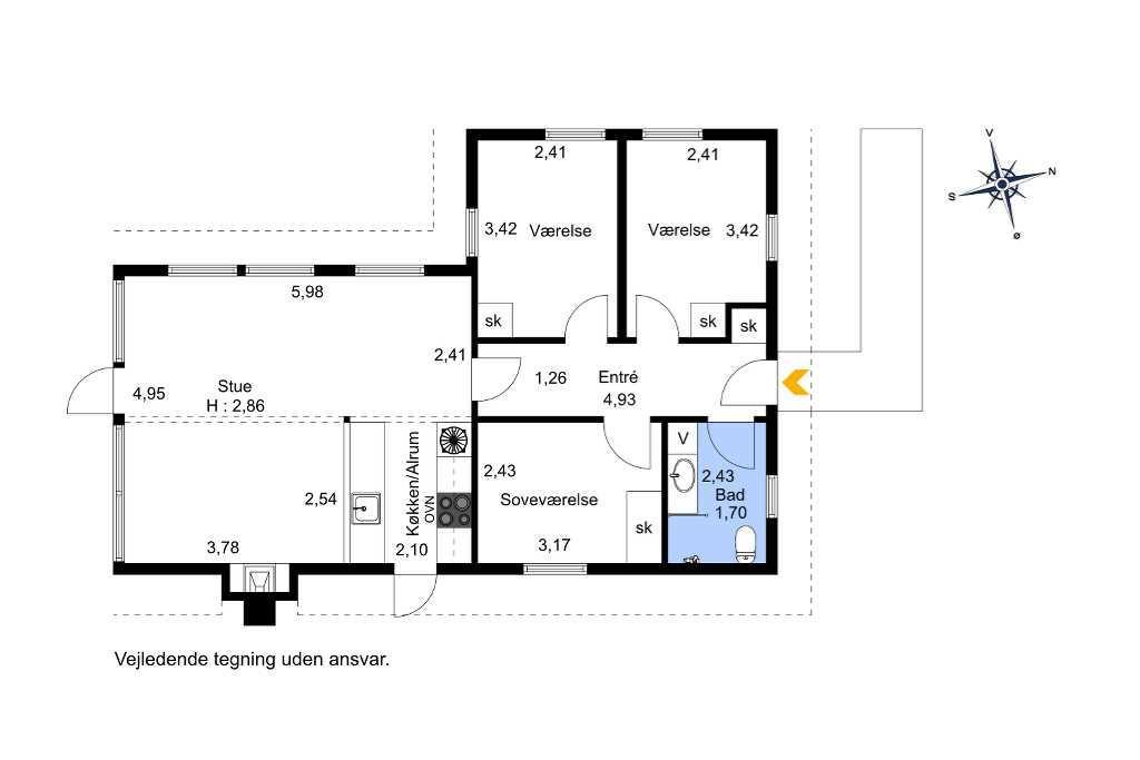 Når aftenen falder på, venter husets tre soveværelser med to dobbeltsenge og to enkeltsenge, samt det rummelige anneks, hvor endnu en dobbeltseng står klar til en god nats søvn. Badeværelset er lyst og funktionelt indrettet med bruseniche, så I kan begynde og afslutte dagen på behagelig vis.