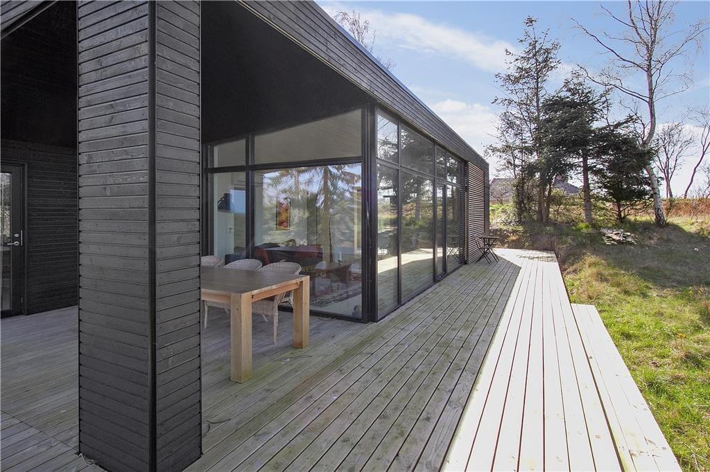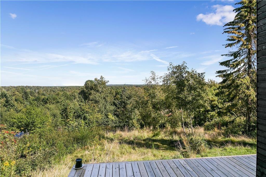 Den store delvist overdækkede terrasse er sommerhusets hjerte, når det kommer til udendørs ophold. Med sin betagende udsigt og gode spiseplads er terrassen et ideelt sted at nyde alt fra morgenkaffe til lange sommeraftener med lækker grillmad og kølige drikke. Den skrånende grund giver sommerhuset en unik placering, og den omkringliggende natur danner en smuk ramme om udendørsoplevelserne. Herfra kan du følge årstidernes skiften og naturens skønhed – perfekt for dig, der elsker rolige omgivelser og frisk luft.