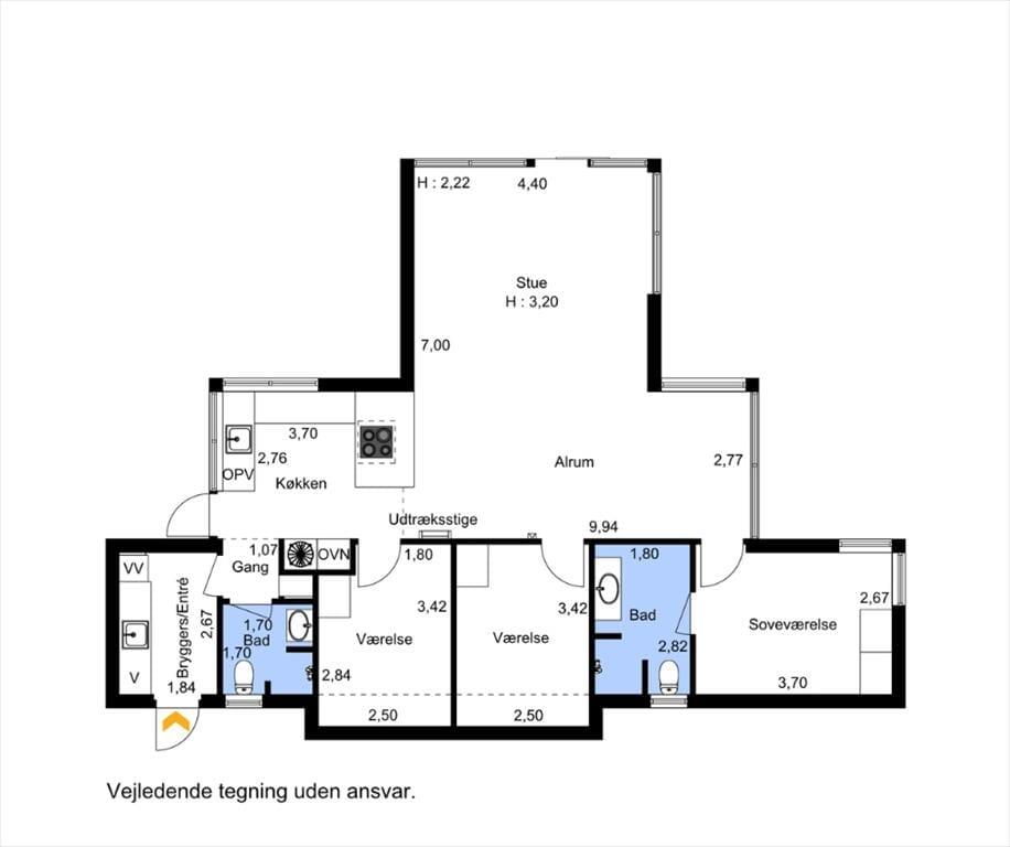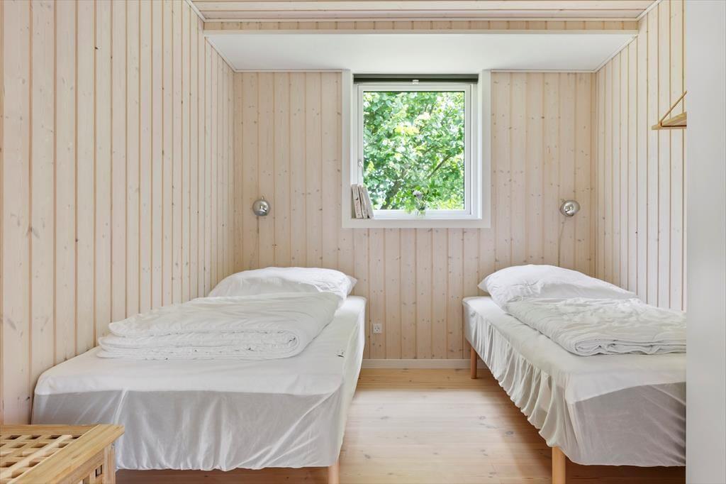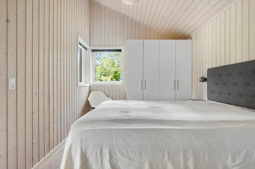 Huset rummer tre gode soveværelser, hvoraf to er udstyret med dobbeltsenge og det tredje med to enkeltsenge. Det ene soveværelse har direkte adgang til eget badeværelse, og der er yderligere et badeværelse til rådighed, hvilket gør sommerhuset ideelt for både familier og venner.