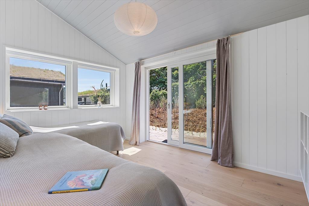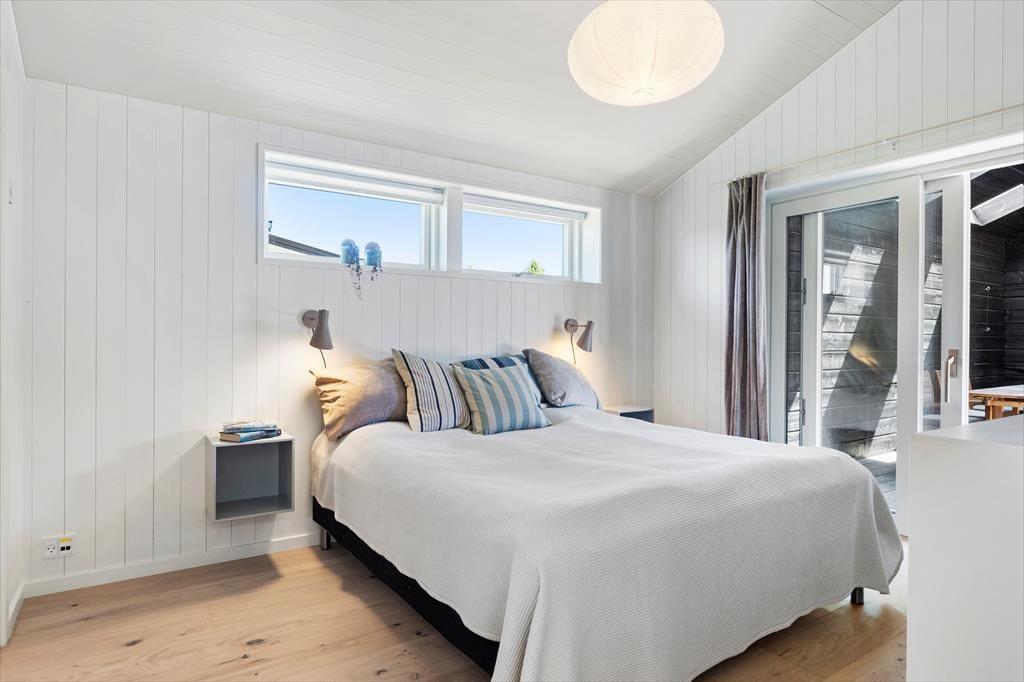 Soveværelserne fordeler sig på 3 soverum, hvoraf 2 er med dobbeltsenge – det ene har eget badeværelse og udgang til terrassen. Det sidste soveværelse er med 2 enkelte senge. Derudover er der et ekstra badeværelse og et bryggers med vaskemaskine og tørretumbler.