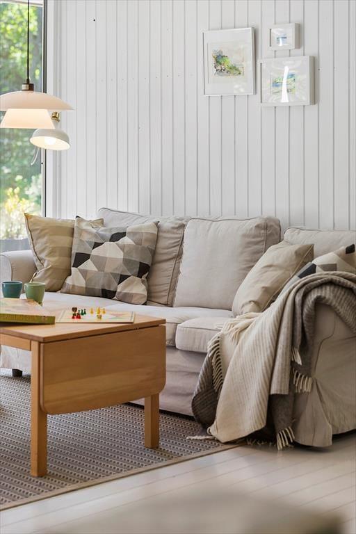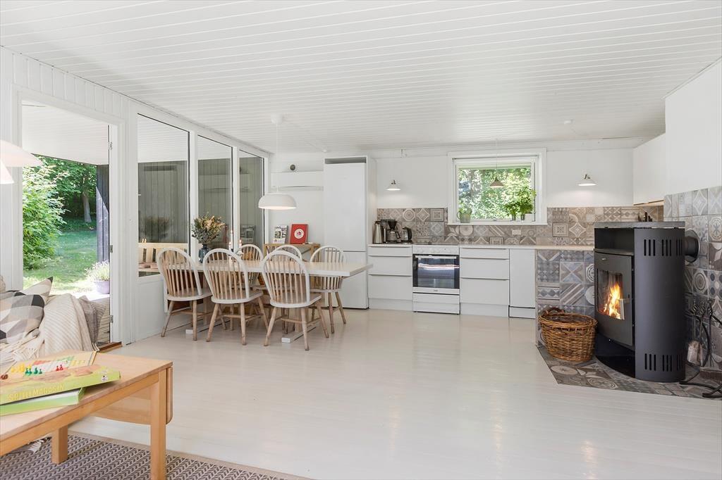 Den rummelige stue inviterer dig til at synke ned i den komfortable sofa, måske med en god bog eller bare for at nyde selskabet. Med åben forbindelse til køkkenet er der mulighed for at kokkerere lækre måltider, mens du fortsat er en del af samtalen.