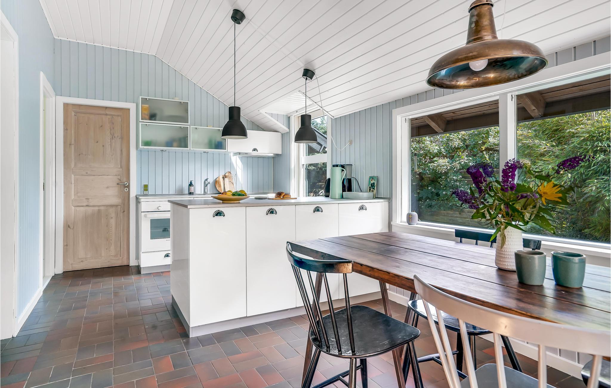 Velkommen til dette dejlige sommerhus, der med sin beliggenhed tæt på havet er ideelt til en afslappende ferie. Husets hjerte er den dejlige opholdsstue med åbent køkken, spisebord og sofahjørne, hvor I kan tilbringe hyggelige stunder med at lave mad, nyde varmen fra brændeovnen eller spille brætspil. Der er også to soveværelser og et badeværelse. Stilen er lys og indbydende.