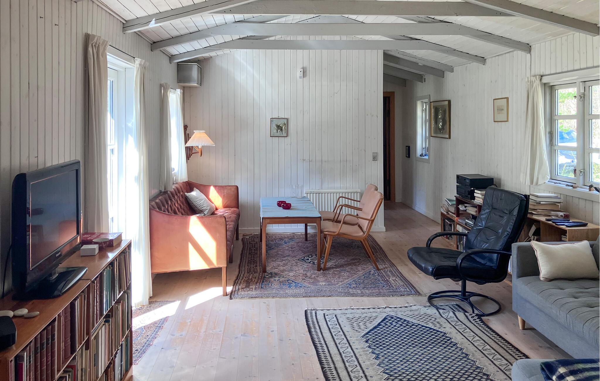 Dette feriehus ligger i et roligt, grønt skovområde og giver jer et afslappende tilflugtssted med masser af privatliv. Den charmerende arkitektoniske stil og den hyggelige atmosfære sikrer øjeblikke med velvære. Gør det behageligt i den lyse opholdsstue. Gennemse de velassorterede bogreoler, slap af i sofaen eller se en film. Værelset er behageligt møbleret med klassiske møbler og en brændeovn, der giver hyggelig varme på kølige aftener. Lav maden sammen i køkkenet og nyd måltiderne i den stilfulde spisestue med udsigt over de grønne områder.