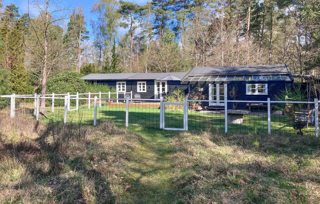 Charmerende træhus i fredeligt skovområde nær Liseleje strand og Arresø med stor indhegnet have og brændeovn.