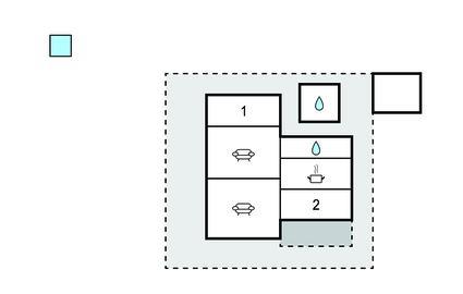 Badeværelse (nr. 1) - WC. Varmt og koldt vand. Bruser