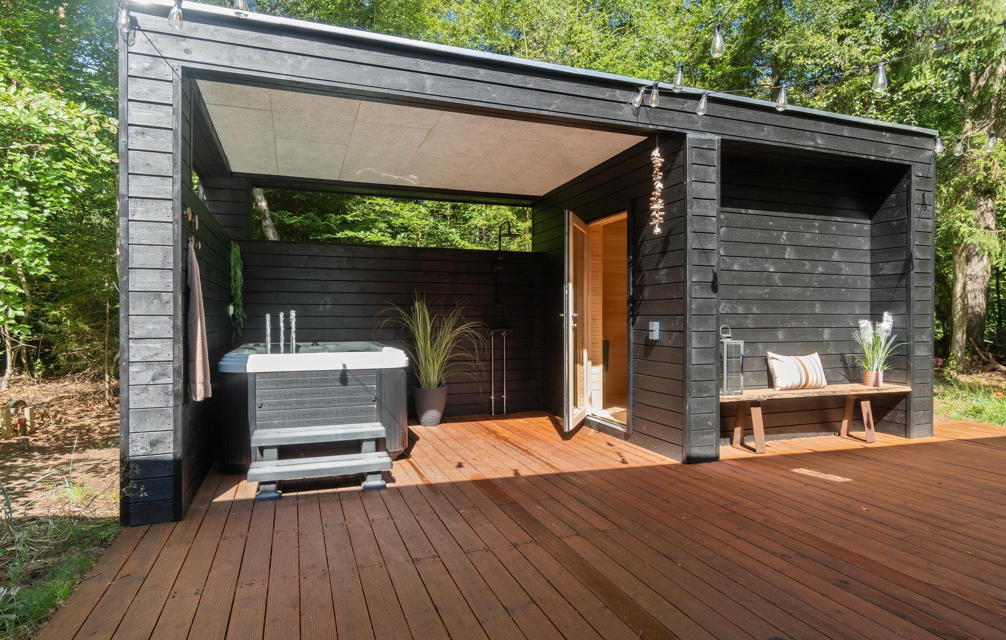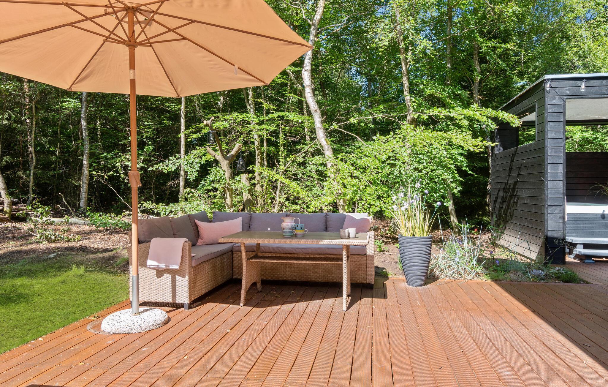 På sommerdagene kan I nyde solen på terrassen og servere dagens måltider udendørs. Som en ekstra luksus er der også et udendørs spabad, så her kan I mærke kombinationen af det varme og vand og den friske luft. Efter en lang gåtur i området er det herligt at få varmen i husets sauna.