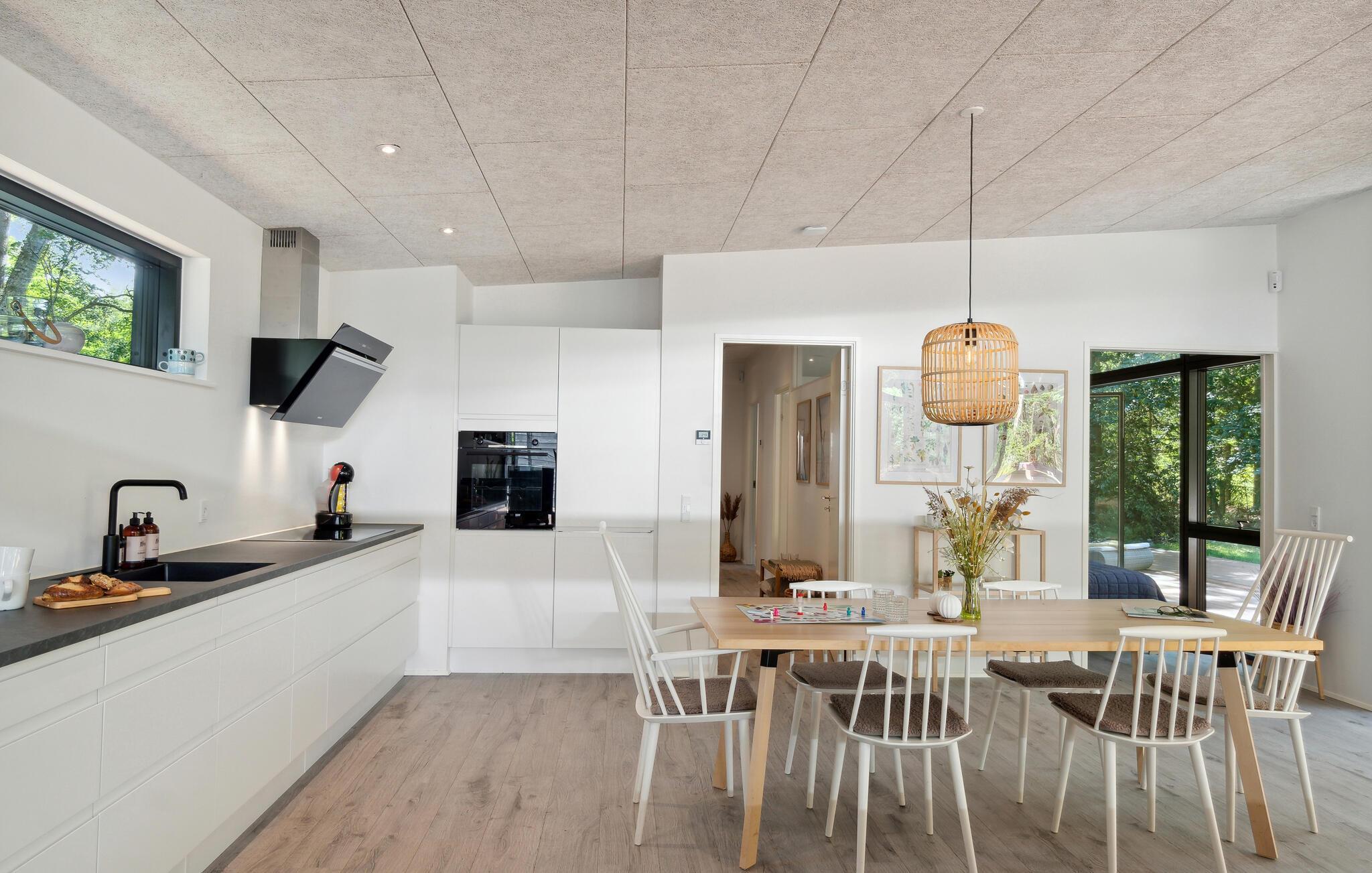 Velkommen til Nordsjællands skove, kystlinje og smukke natur, som I får nem adgang til fra dette skønne hus. Huset ligger på en grøn grund, der er omkranset af træer, og den rolige atmosfære mærkes både ude og inde. Boligen emmer af lys, luft og stilrene indretningsløsninger, så her er det nemt at slappe af og glemme alt om den hektiske hverdag. Fyld dagene med oplevelser i naturen, udflugter og strandture og vend tilbage til sommerhusets lækre faciliteter til madlavning og hyggelige fællesrum.
