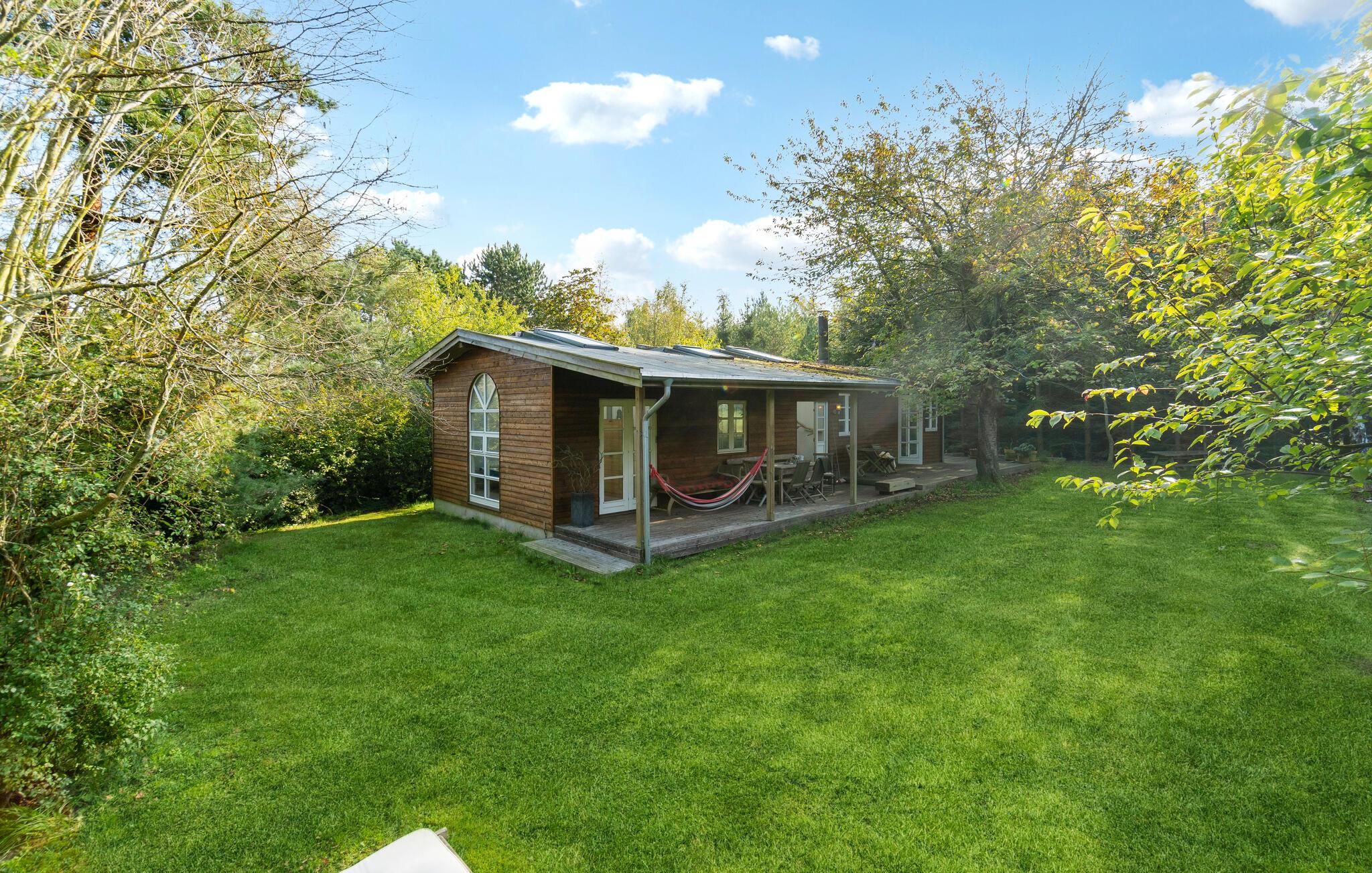 Hyggeligt feriehus tæt på Liseleje Strand med have, terrasse og skøn naturudsigt.