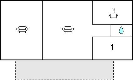 Opholdsstue - 1 Soveplads. (Sofa, madras eller lignende).