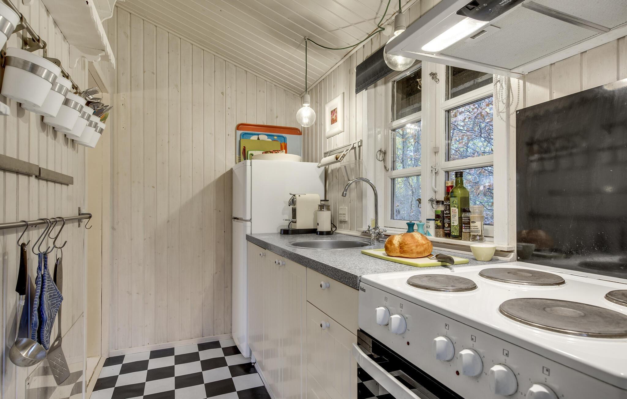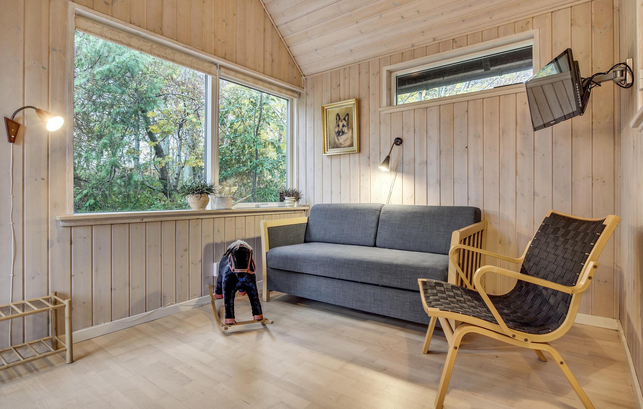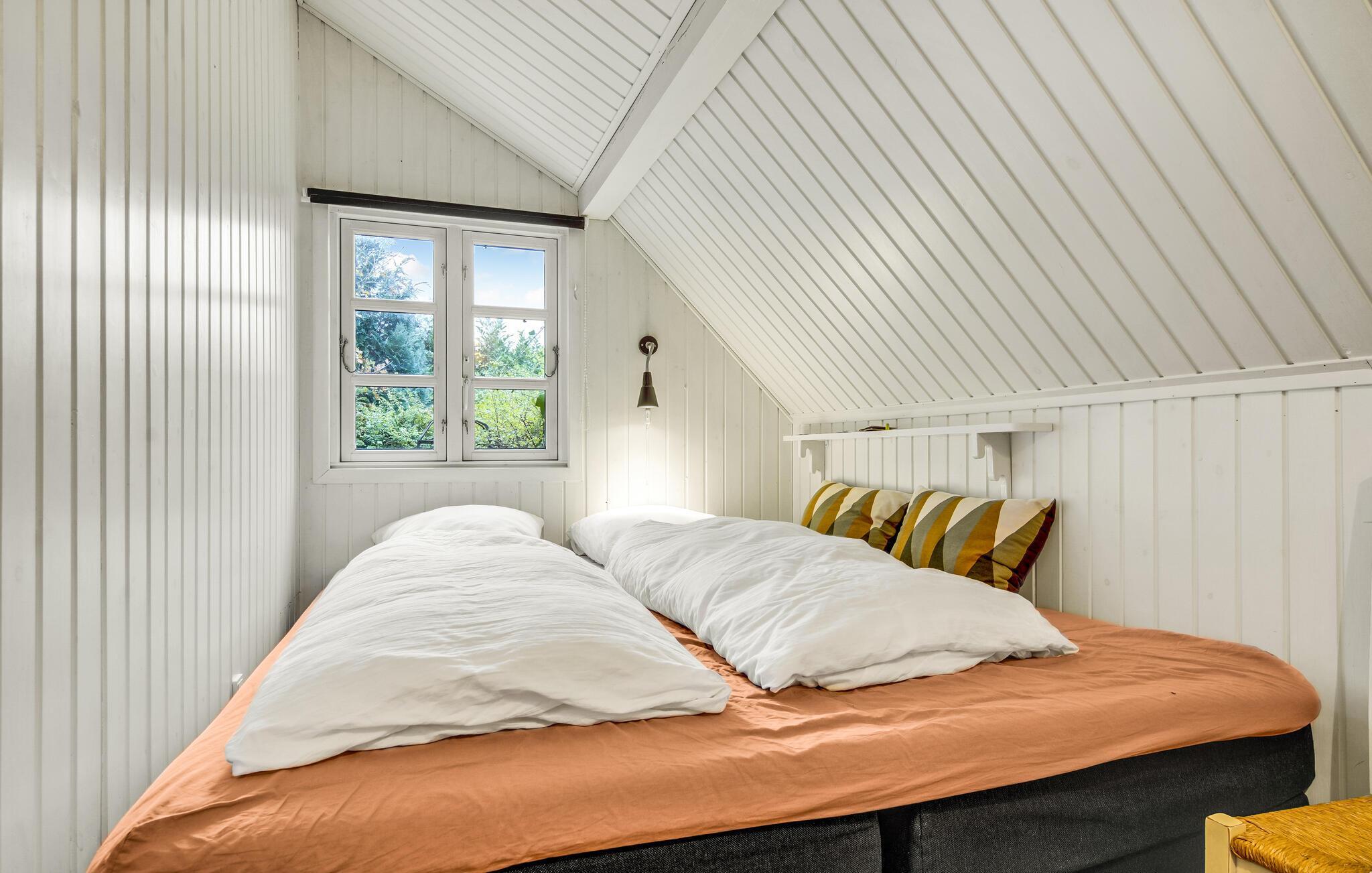 Skal jeres næste ferie være fyldt med maleriske omgivelser, afslapning foran brændeovnen og hyggelige læsestunder, så rammer I plet med dette sommerhus. Her er der ro, grøn natur og fredfyldt atmosfære inden for væggene. Huset er charmerende indrettet og ligger omringet af en ugeneret skøn have med høje træer og buske. Terrassen er forhøjet og får masser af sol, så I kan ofte nyde kaffen udenfor.