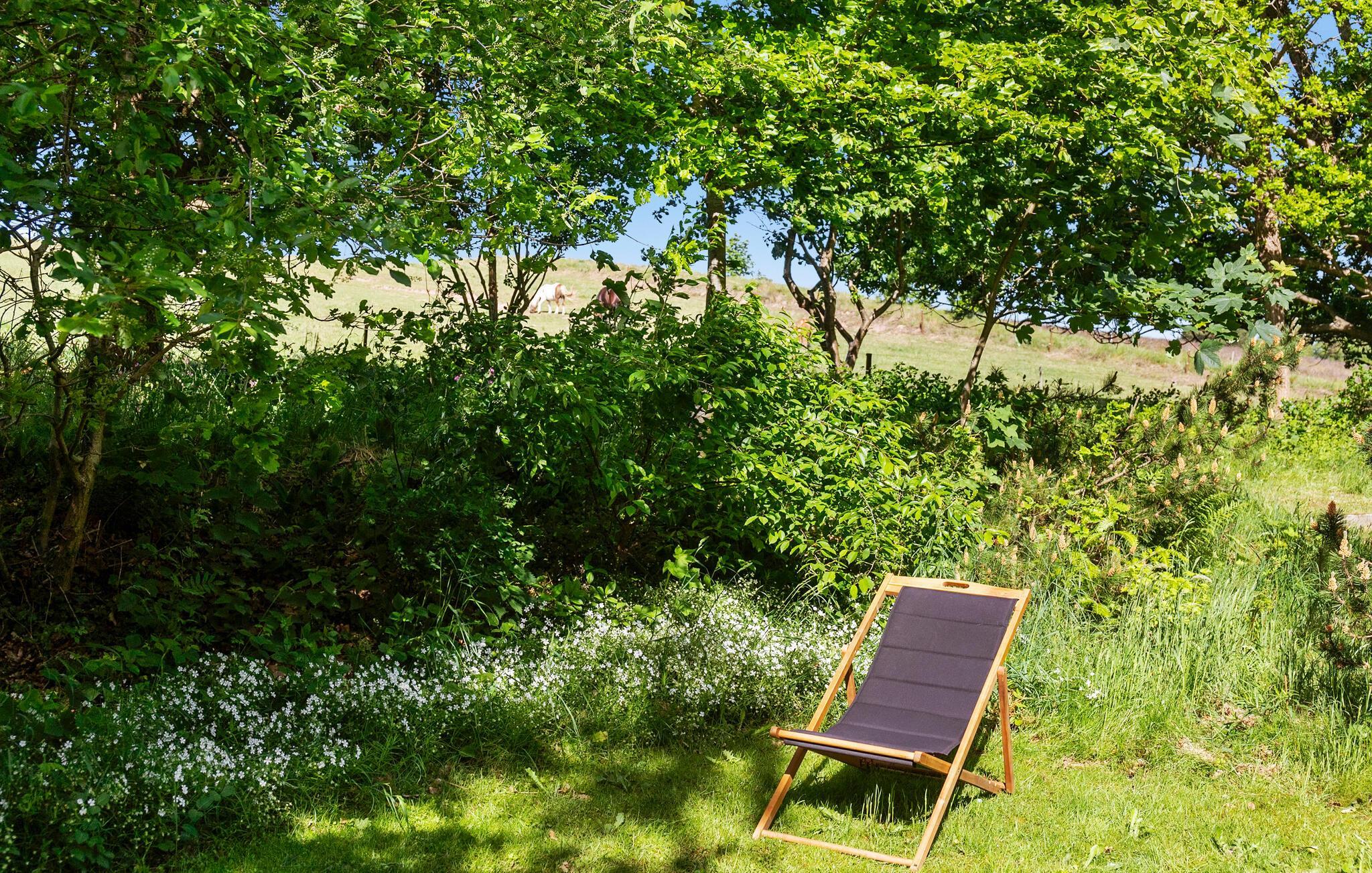 Hyggeligt træhus nær Liseleje Strand med stor have