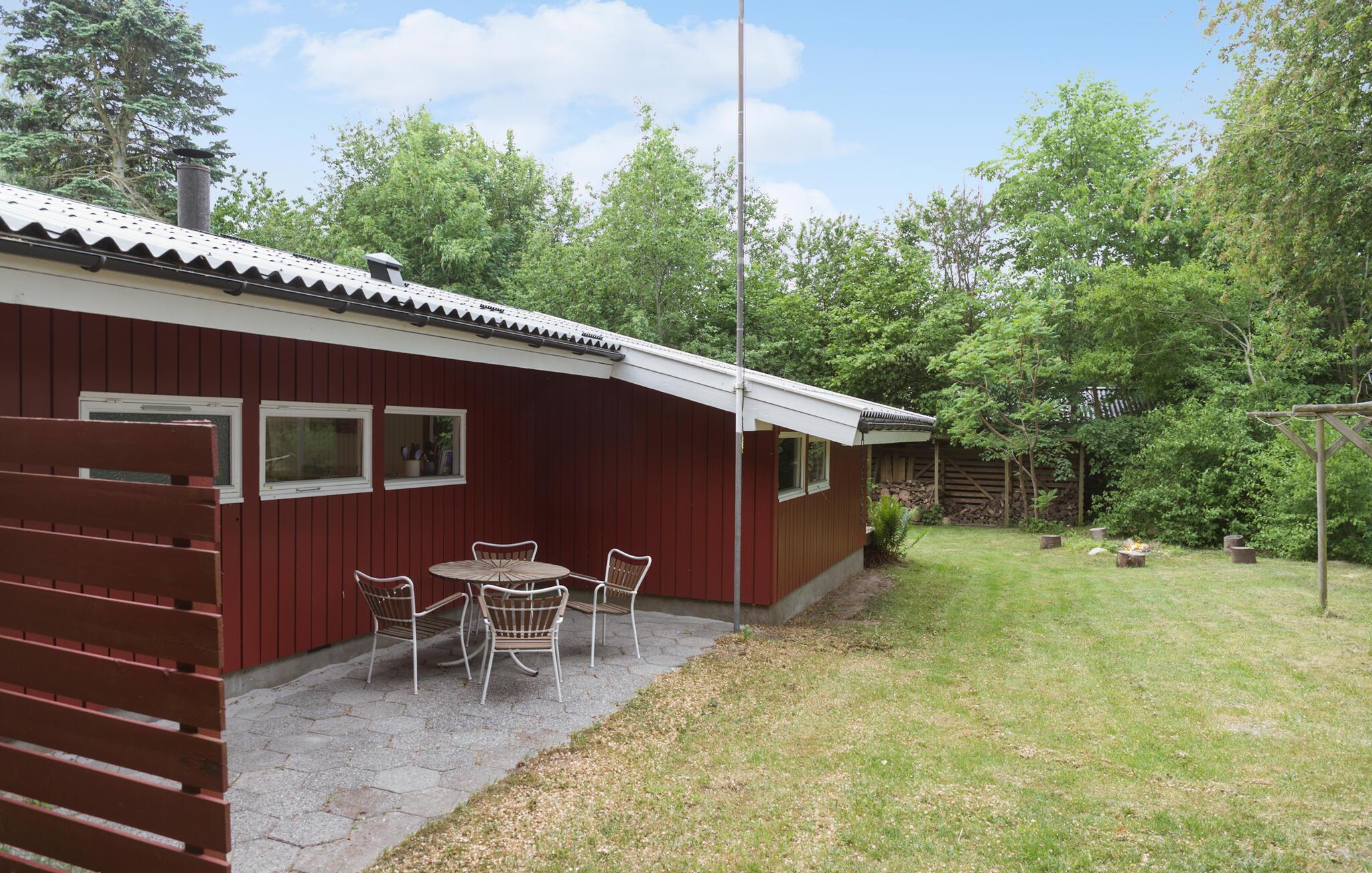 Til huset hører en skøn terrasse, der er delvist overdækket, så I kan finde sol, skygge og læ efter behov på de varme sommerdage. Der er masser af plads i haven at boltre sig på for børnene og en trampolin, hvor de kan brænde lidt energi af, inden I tager på tur. Og måske I skal lade en dejlig sommeraften gå på hæld med snobrød og skumfiduser ved bålfadet?