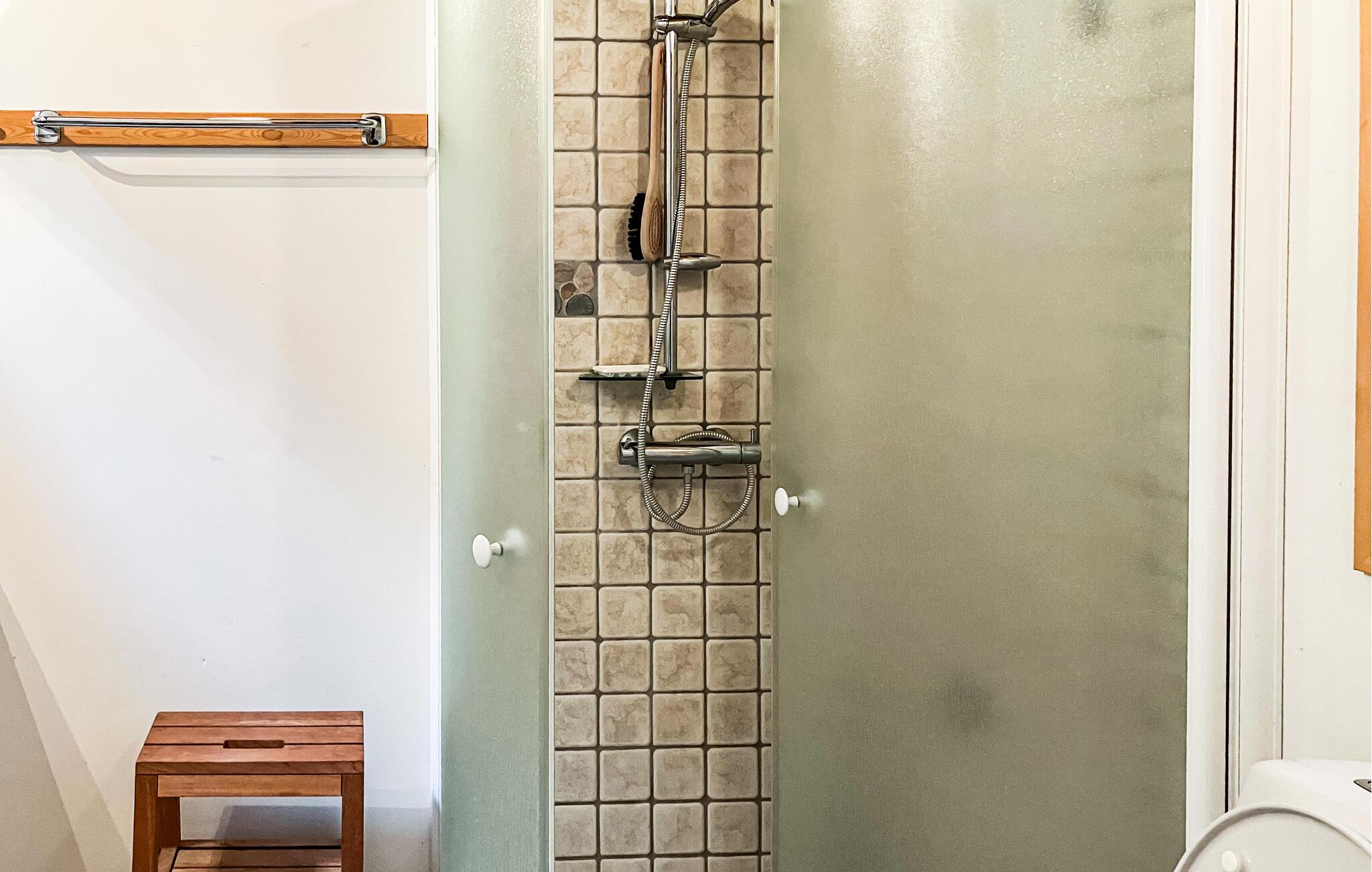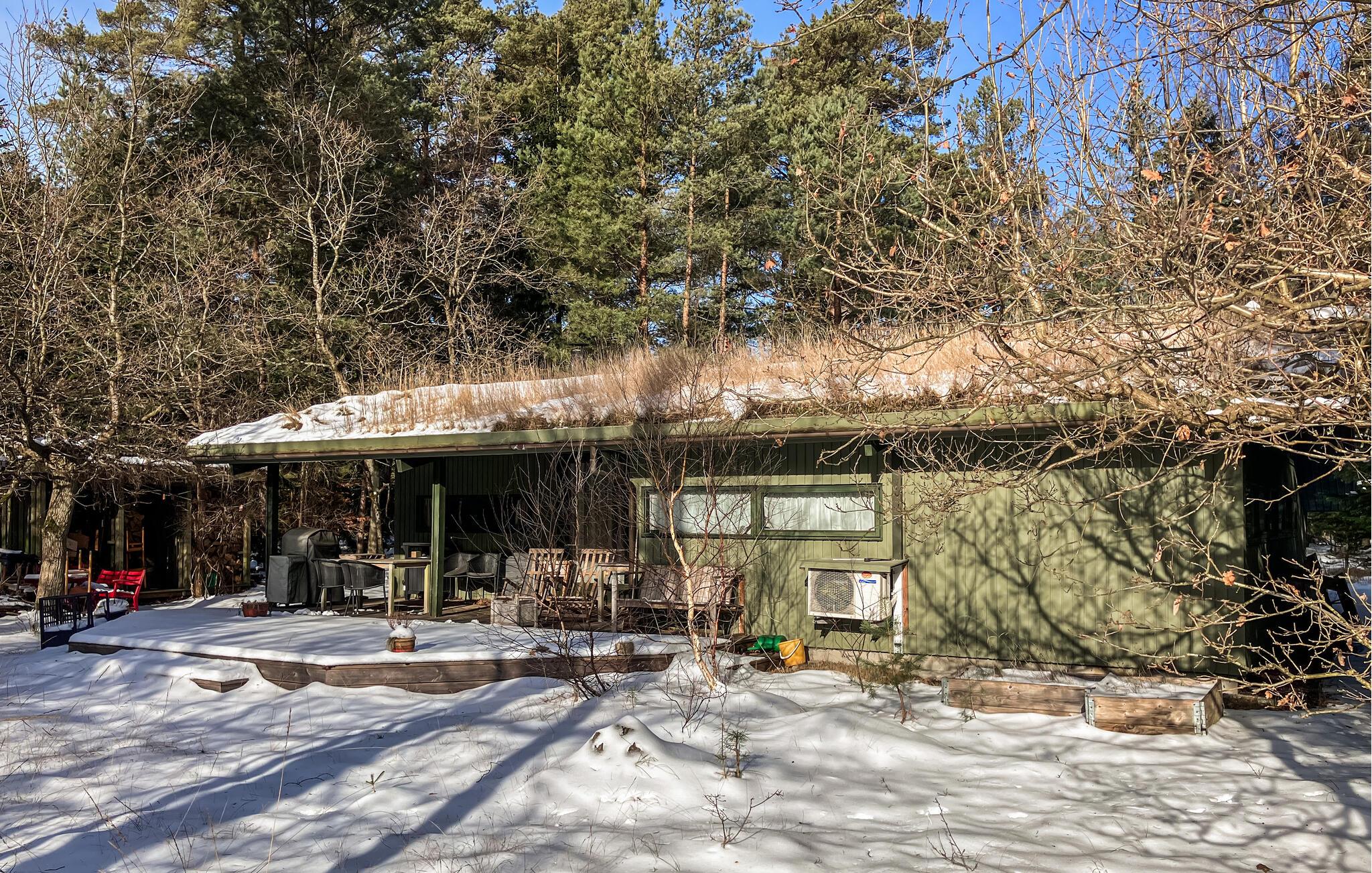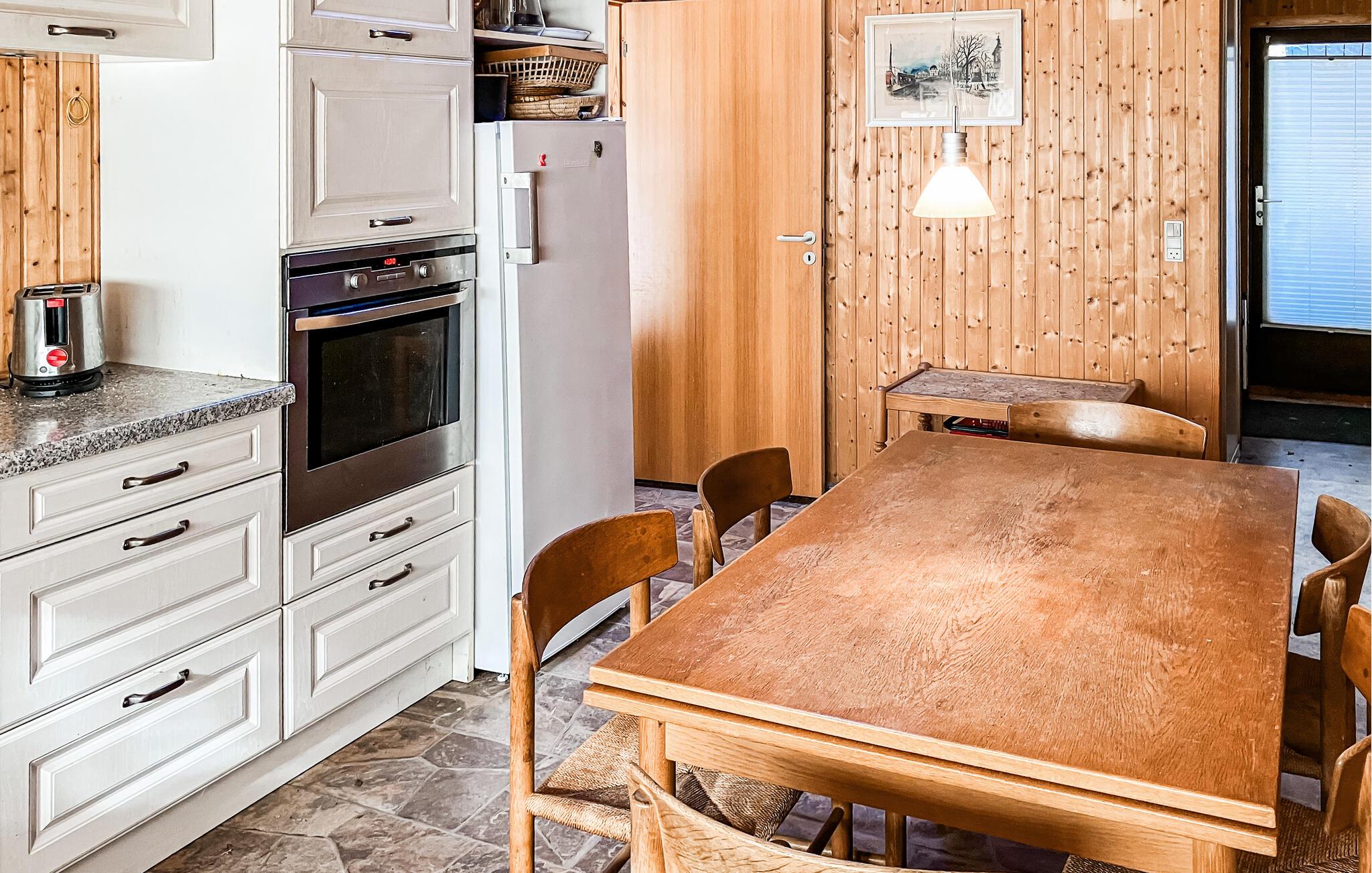 Dette hyggelige træhus udstråler en behagelig og naturlig atmosfære med sine varme vægbeklædninger, store vinduer og brændeovn. Tilbring hyggelige timer med at spille kort eller se en film sammen på sofaen. Læn jer tilbage i en af ??lænestolene med en god bog og glem tiden.