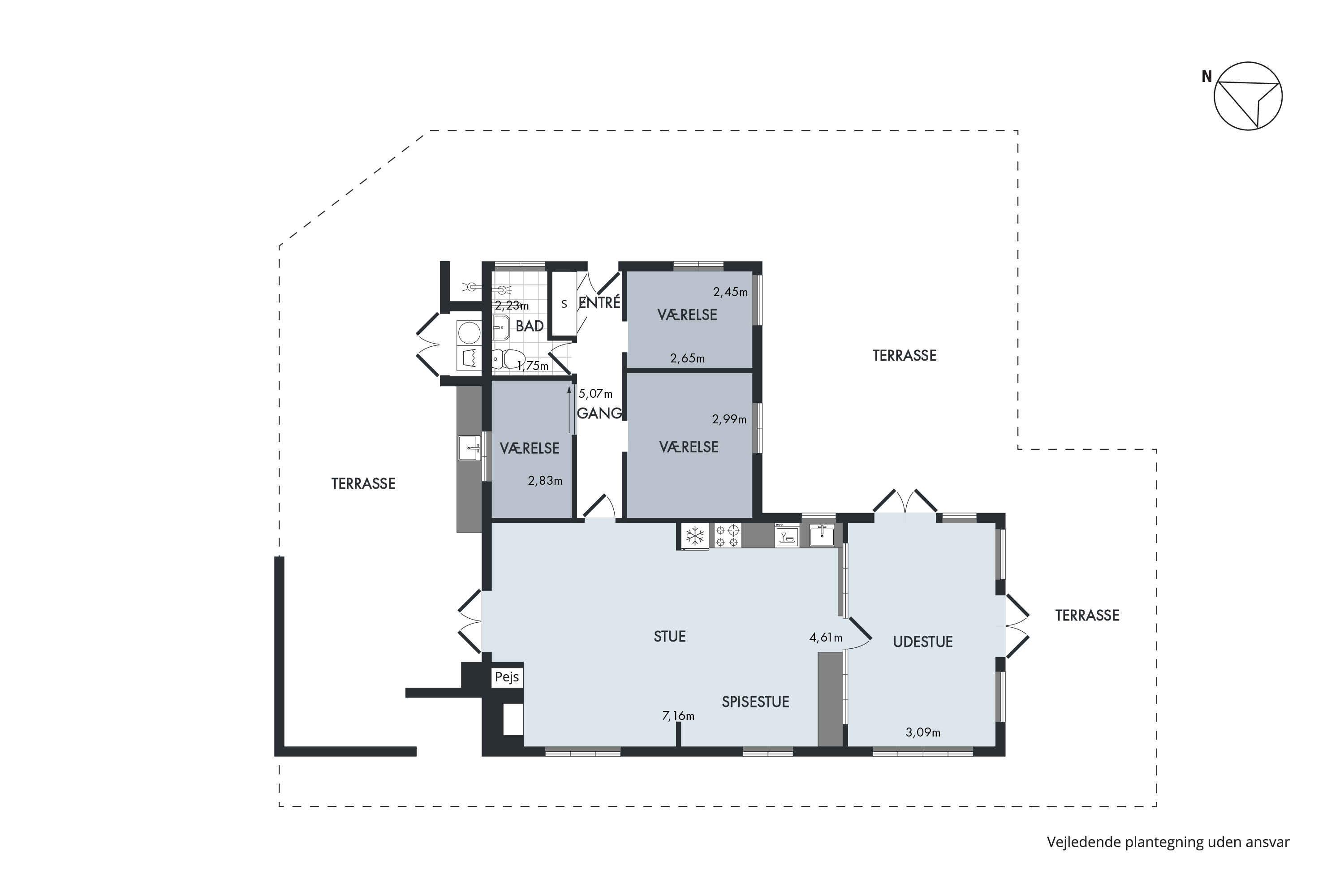 Klassisk dansk sommerhus i sort med hvidmalede bondehusvinduer, som indvendig er gennemgribende istandsat - inden for de seneste år - med respekt for husets identitet. Huset indeholder køkkenalrum/sofastue og tre værelser. I hver af de to værelser er der to sovepladser, mens der i det tredje er en enkeltseng, der kan trækkes ud til en dobbeltseng i hele værelsets bredde. Huset ligger i det gamle Liseleje hvor der kun findes grusveje og små stier, som er omkranset af gamle træer. Der er er kun 250 meter til en af Danmarks bedste badestrande og 7 minutters gåtur til Liseleje centrum. Haven er yderst privat, og der er ingen bilstøj. Du kan frit og ugeneret tage et varmt brusebad under den udendørs bruser. Sommerhusliv er også terrasseliv. Det får du her i overmål med træterrasse omkring hele huset, så der altid kan findes en solplet, og er solen for kraftig kan markisen rulles ud. Derudover er der et skønt og rustikt orangie mod syd, hvor aftener og kølige dage kan nydes med udsigt til naturen. Aftensmaden kan eventuelt tilberedes i husets udekøkken, hvor der er stor gasgrill og rindende koldt/varmt vand ved vasken. Til børnene er der gyngestativ, legehus og en nedgravet trampolin. Liselejes hyggelige centrum er kun 700 meter væk, så der er ikke langt til en vaffelis fra en af de mange ishuse, indkøb, friskbagt brød eller en kop kaffe på en af byens caféer. Obs, udlejes ikke til erhversmæssigt brug.