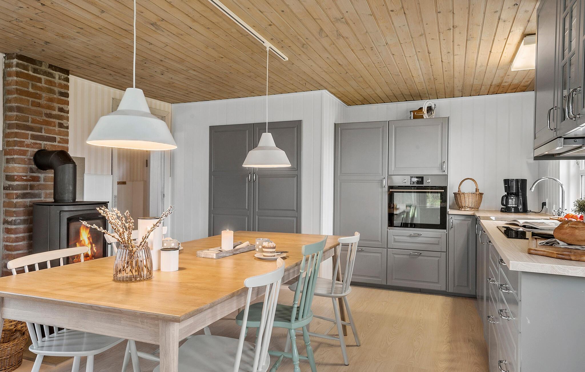 Dette lyse, indbydende sommerhus byder velkommen med en hyggelig indretning og smagfuld løsninger. Tænd op i brændeovnen og glæd jer til hyggelige madlavningsaftener i det åbne køkken efterfulgt af fællesspisning rundt om det indbydende spisebord. Slå jer ned i sofaen og hyg jer med en god film, en spændende bog eller en spilleaften.