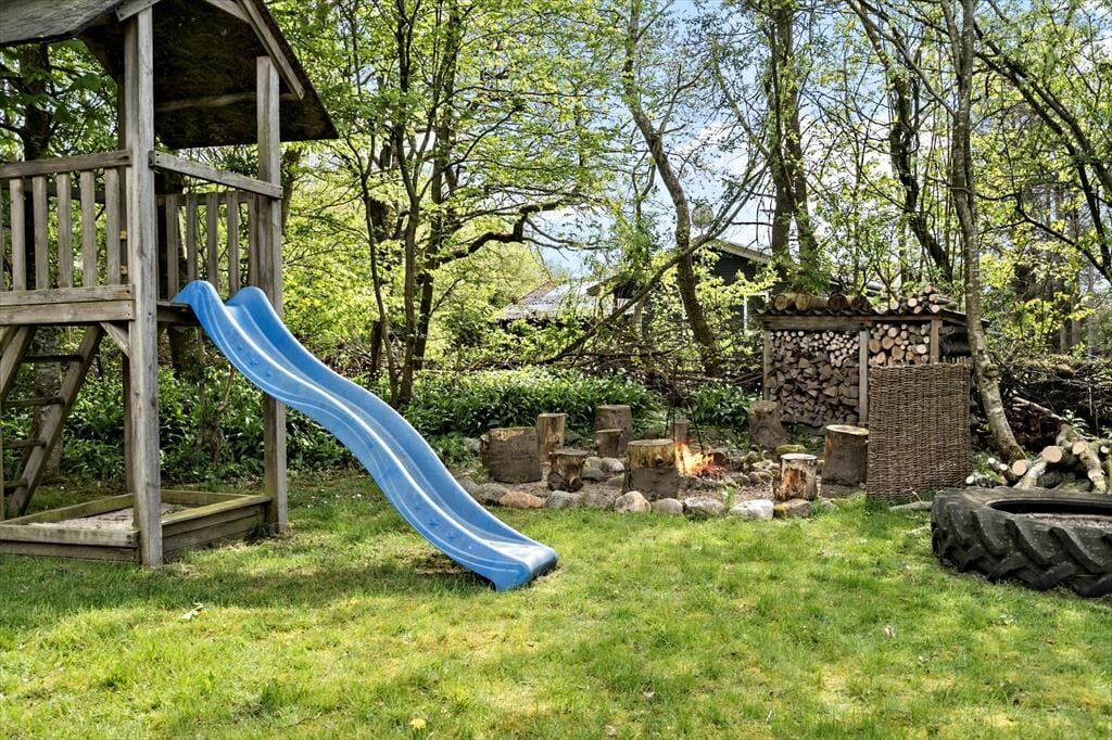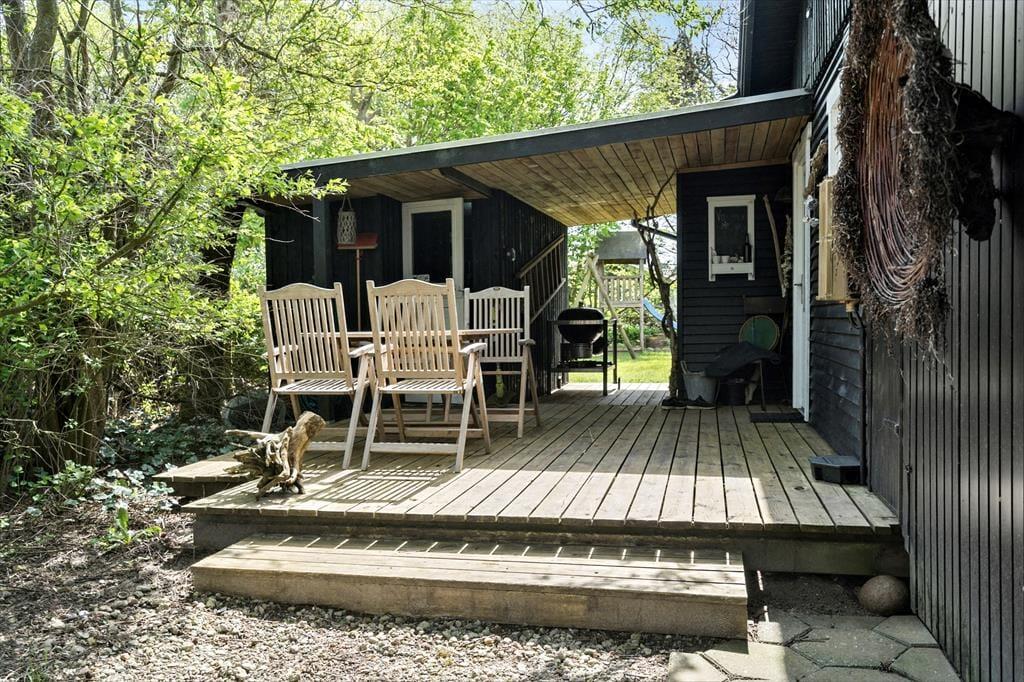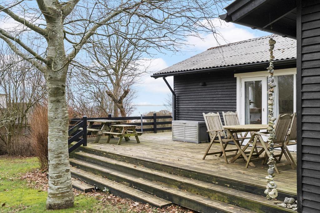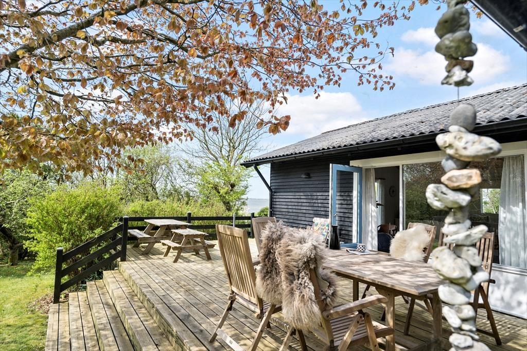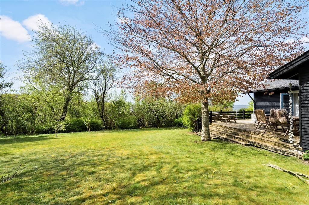 Mange skønne timer tilbringer både store og små i haven, der byder på en god, plan græsplæne, en bålplads, et trampolin, et legeredskab og en sandkasse. To åbne terrasser er tilknyttet ferieboligen. Den sydvendte terrasse byder på en attraktiv udsigt over fjorden. Uanset vindretning og tidspunkt på dagen vil du altid finde et passende sted at slappe af på disse terrasser.