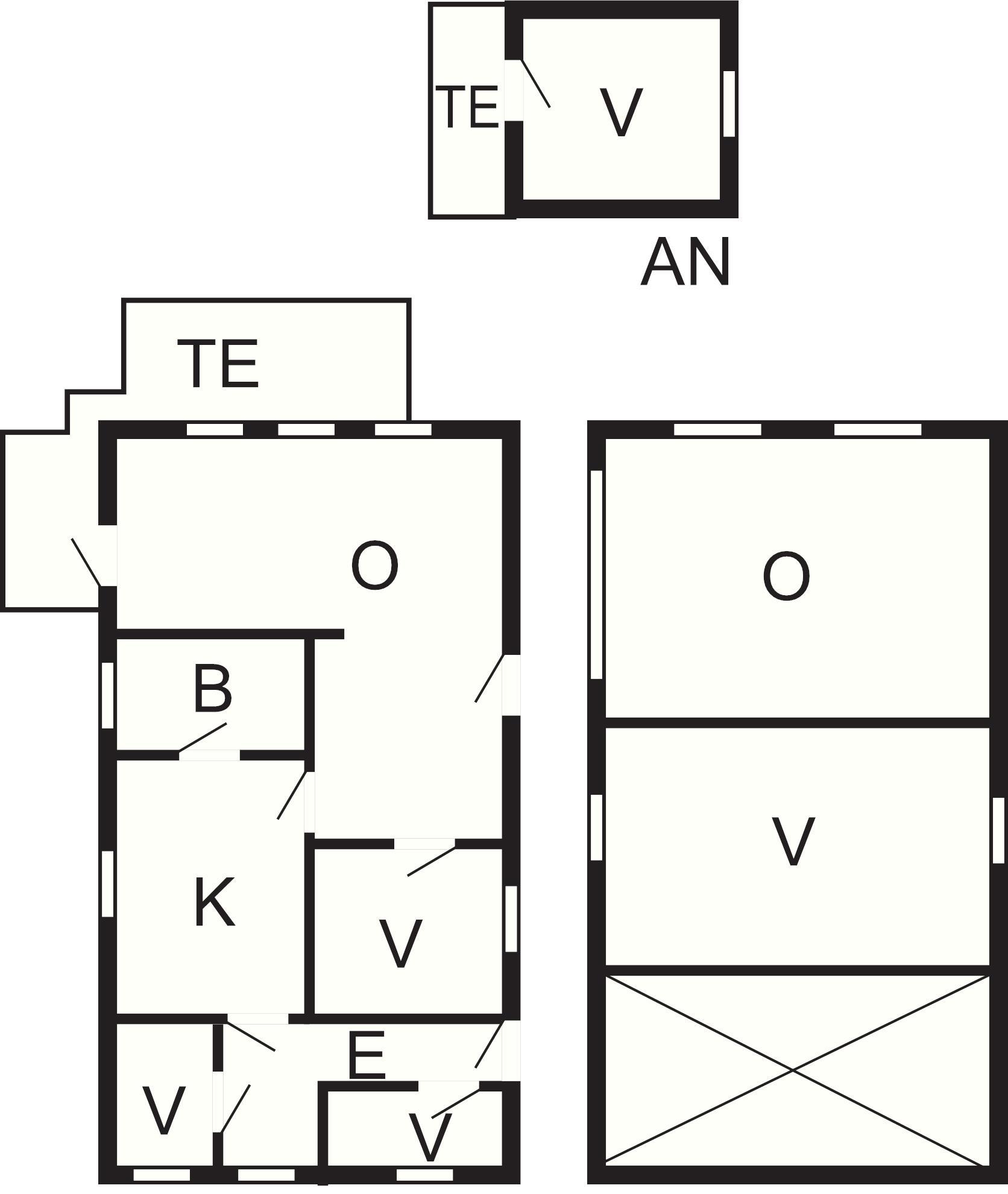4 Soveværelser: (1DS)+(1DS)+(1DO)+(2K), barneseng 150 cm
