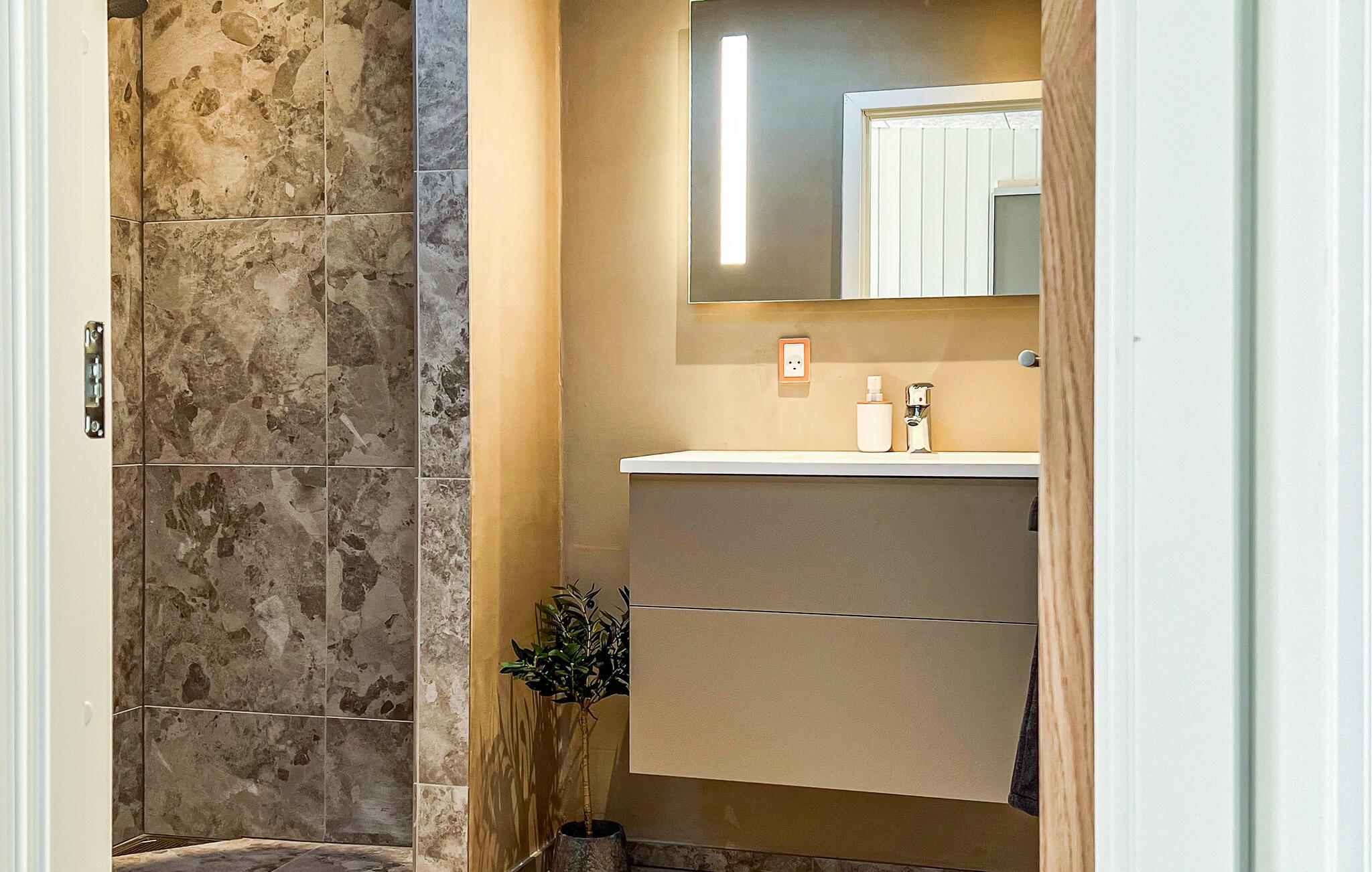 Badeværelse (nr. 1) - WC. Varmt og koldt vand. Bruser