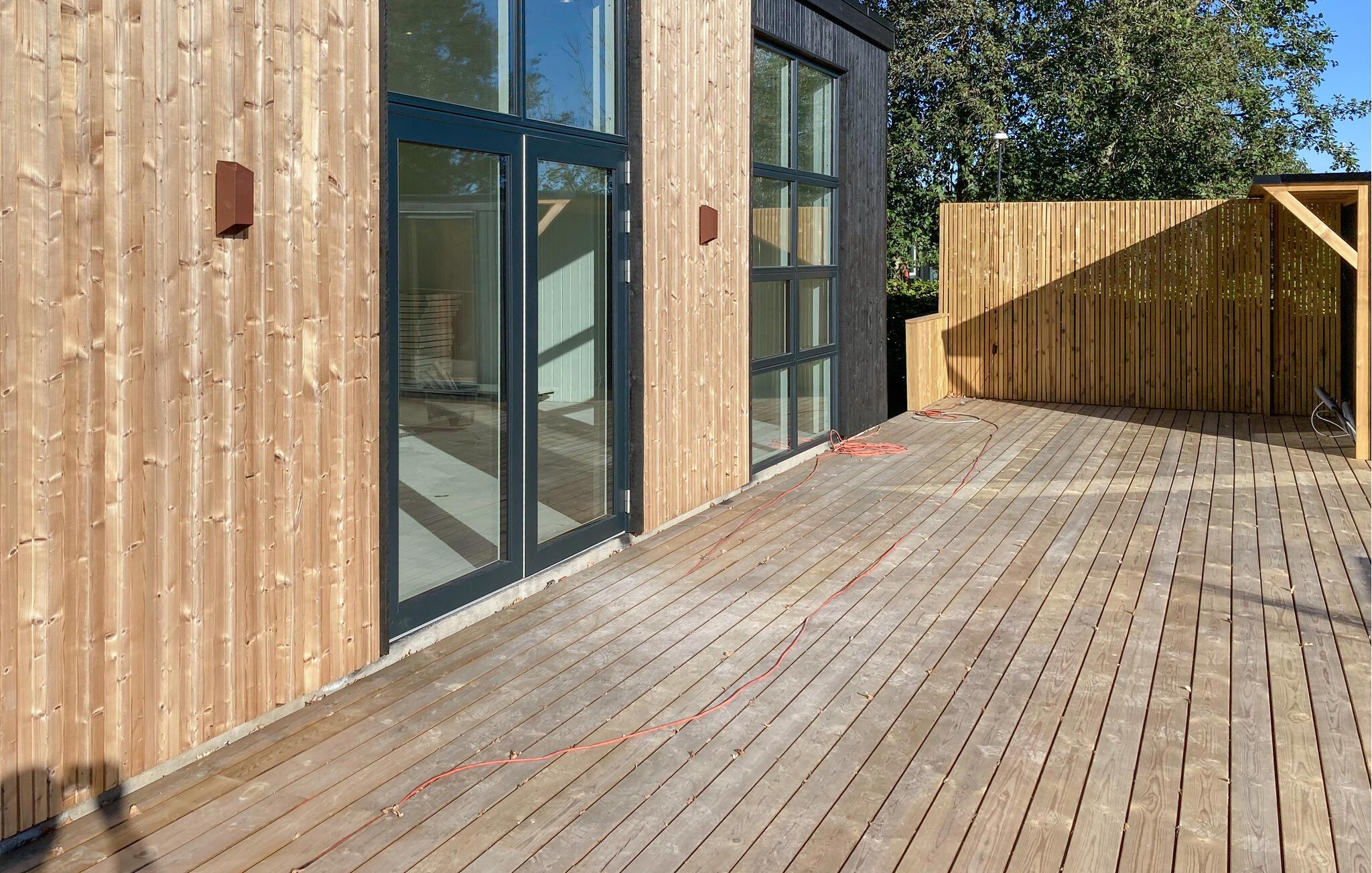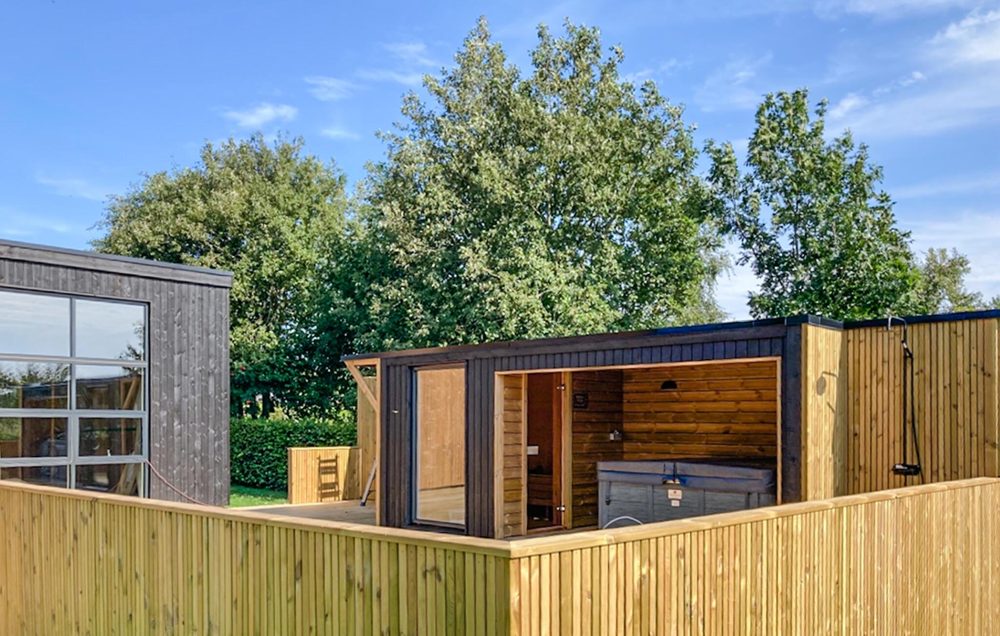Træd ud på træterrassen og nyd en feriestund udendørs. Børnene har mulighed for at hoppe løs på trampolinen, gynge en tur eller lege i sandkassen. I det overdækkede udendørsområde med spabad og sauna kan de voksne komme helt ned i tempo og nyde freden og roen efter en aktiv dag.