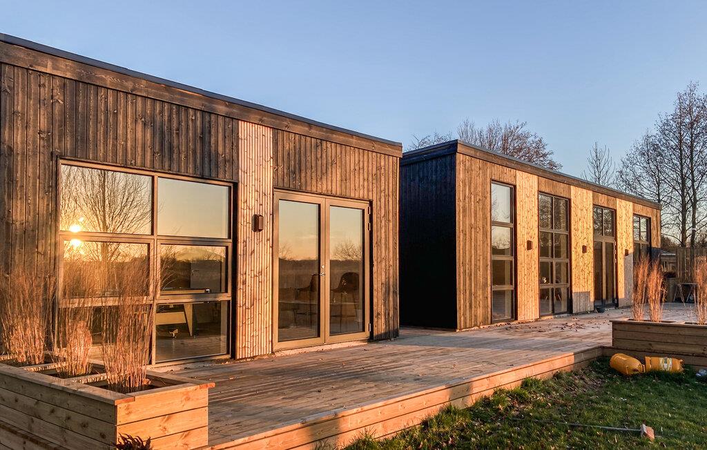 Moderne feriehus i Livbjerggaard Strand med sauna, spabad og aktivitetsrum tæt på fjorden.