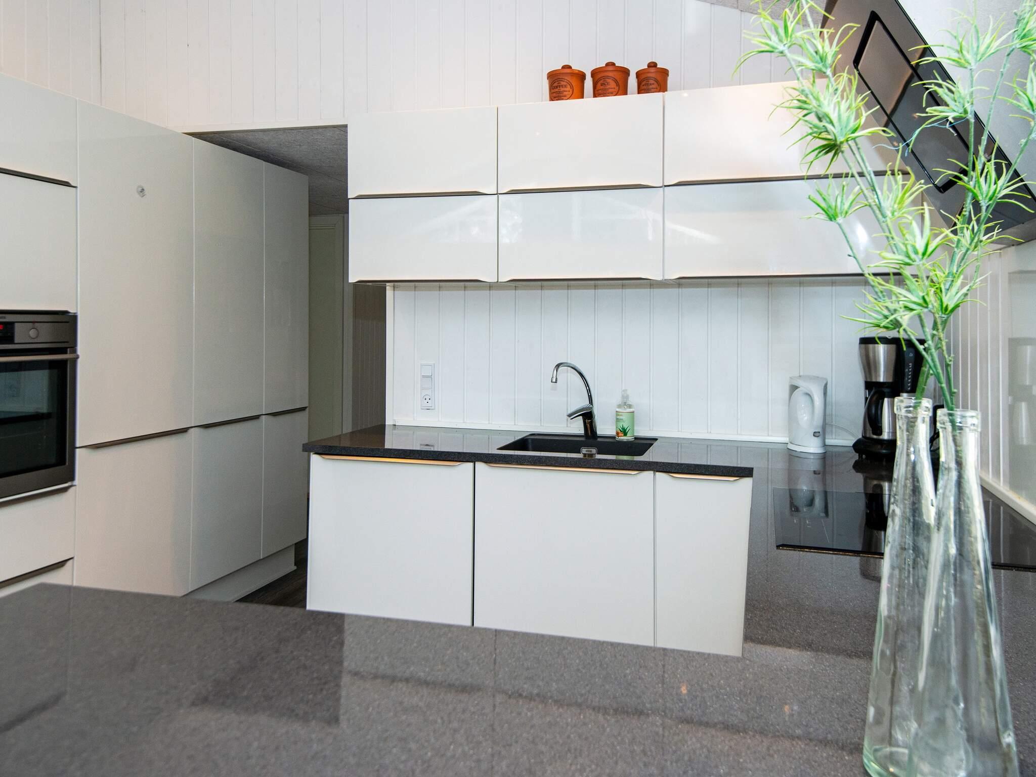 Foruden de to badeværelser, hvoraf det ene er med sauna, er der fire soveværelser, hvoraf de tre har dobbeltseng mens det sidste soverum er med en etageseng til to personer. Der er mulighed for opladning af elbil.