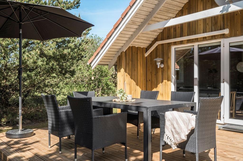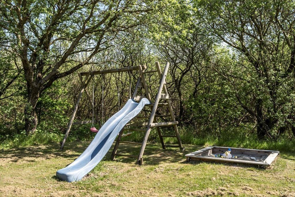 Grunden måler hele 2352, så også ude i det fri, kan I boltre jer frit. De yngste kan gynge og lege i sandkassen, inden hele familien deltager i en fodboldkamp på græsplænen, der skærmes af tæt beplantning. Er det tid til en pause, kan I slappe af på den store og delvist overdækkede træterrasse, hvorfra I har frit udsyn til den høje himmel og de flotteste solnedgange mod vest. Der er også en åben terrasse øst for huset, så I har flere dejlige hygge- og lækroge at vælge imellem i havens fredfyldte omgivelser.