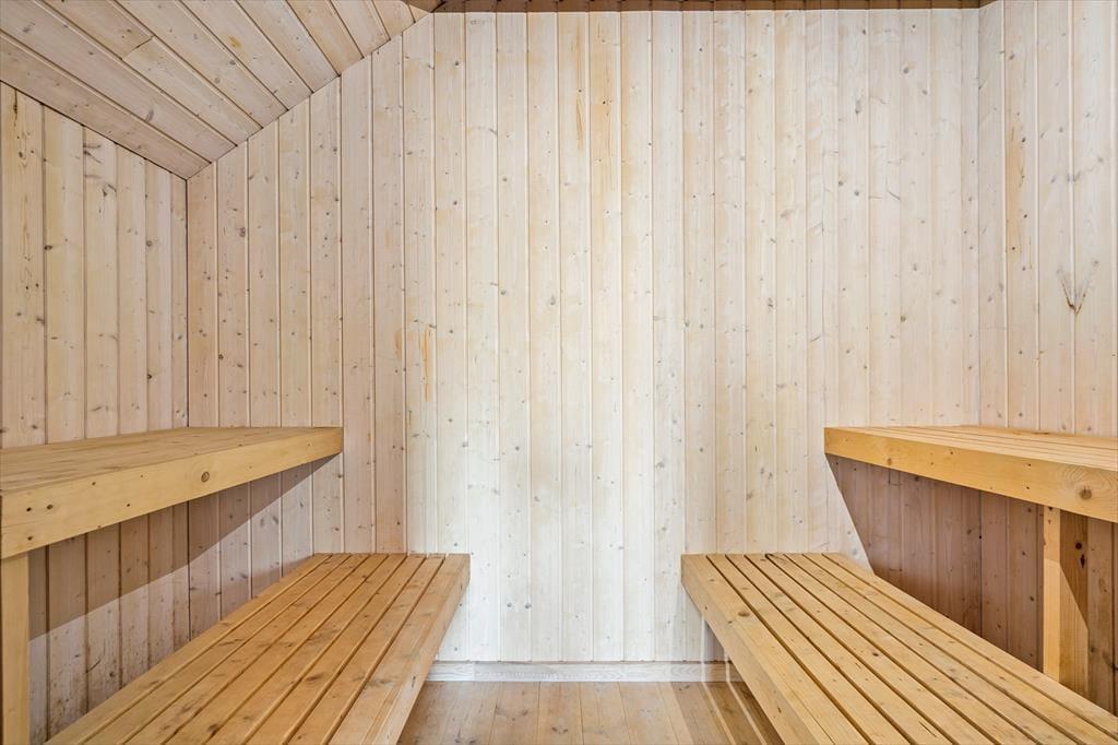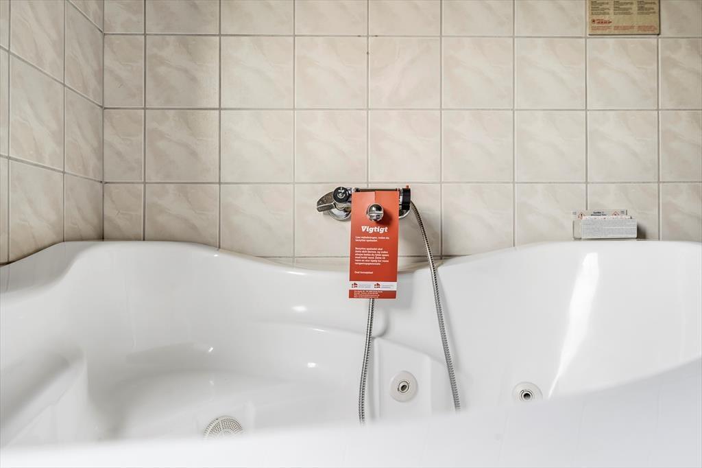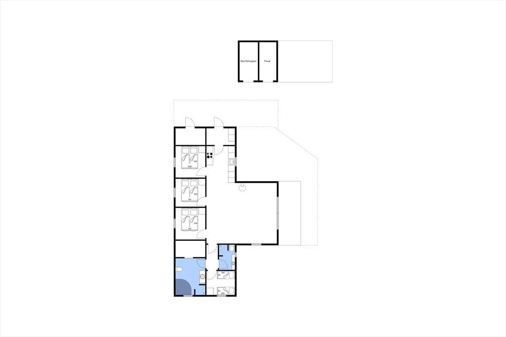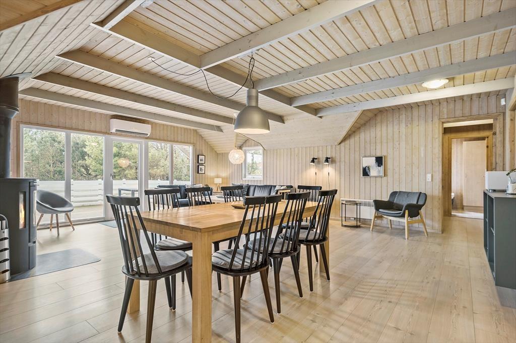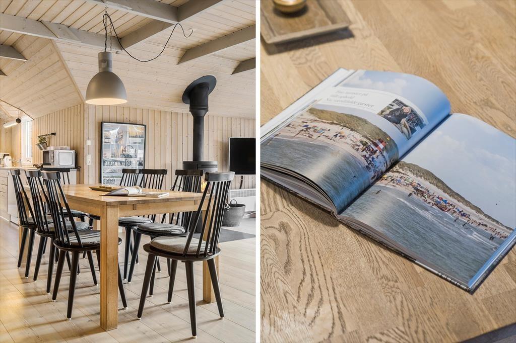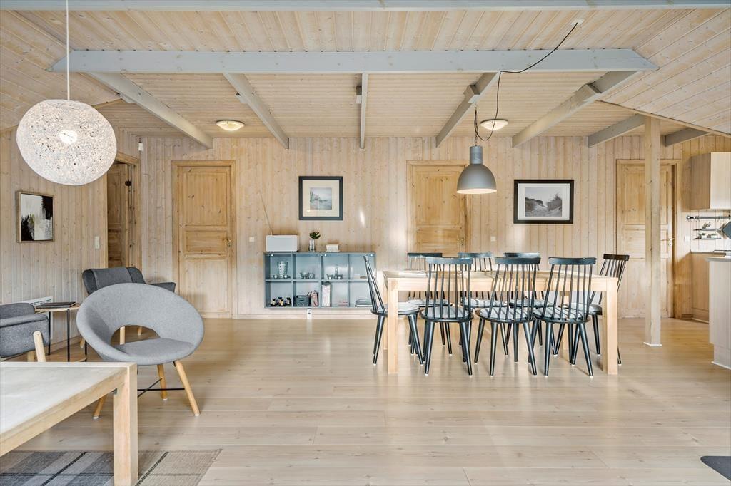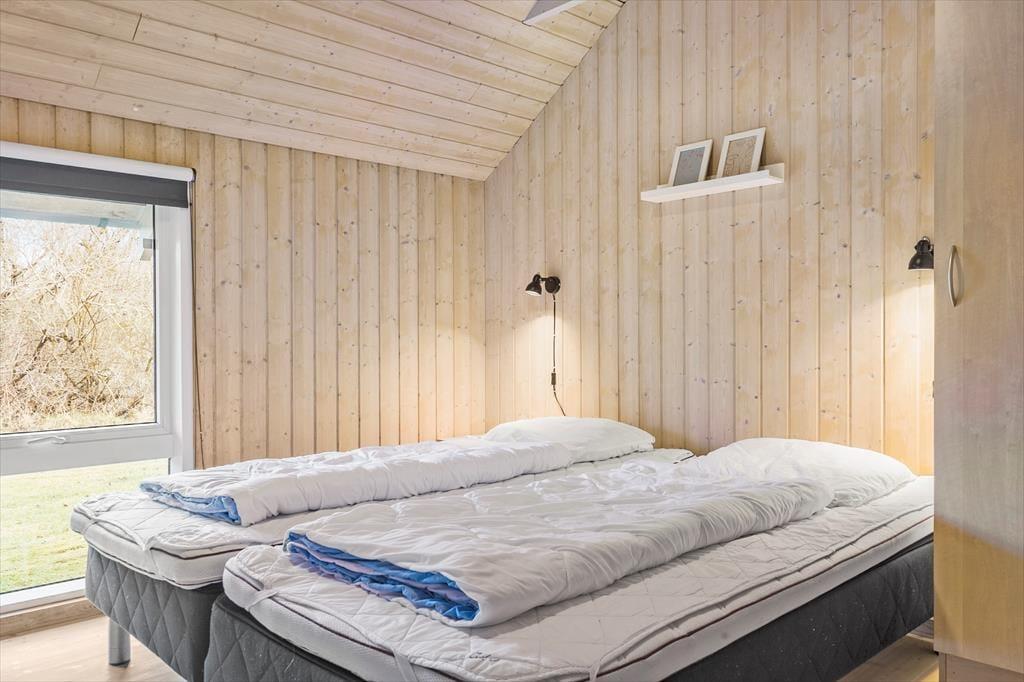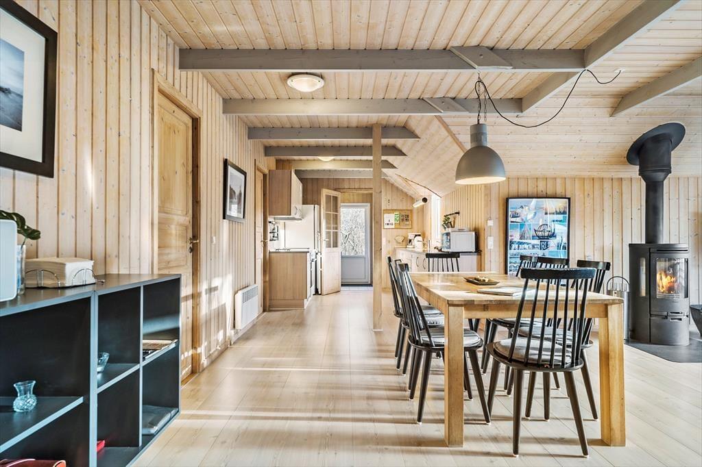 Sommerhuset, der ligger her på adressen, er et hyggeligt og velindrettet eksemplar på hele 117 m2. Planløsningen byder på fire soveværelser og to badeværelser, så huset kan oplagt bruges som feriebase for to børnefamilier. Måske især de voksne vil værdsætte spabadet og saunaen, der er del af indretningen på det største badeværelse – og mon ikke også det er de voksne, der kan se fordelen i, at der er både vaskemaskine og tørretumbler i entréen. Til gengæld vil både store og små sikkert blive glade for det dejlige opholdsrum, hvor I har masser af plads til at lege, spille brætspil og slappe af foran fladskærmen nær brændeovnen. Et veludstyret køkken ligger i åben forbindelse med stuen, og havedøren gør det nemt at tage terrassemiljøet i brug.