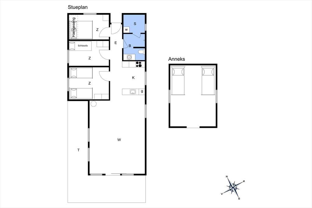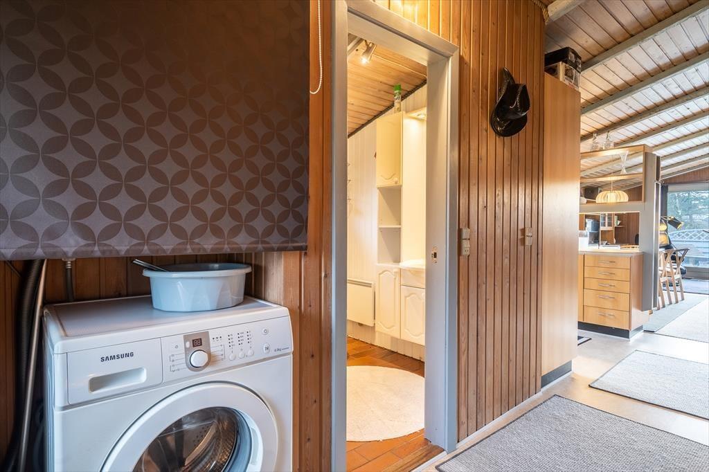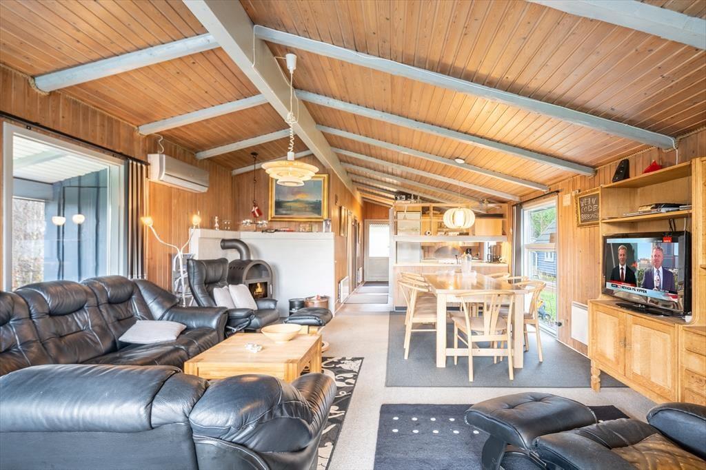 Træd indenfor i et lyst og indbydende træhus, hvor den ægte, gamle sommerhusstemning straks mærkes. Her emmer alt af ro og nærvær – fra de synlige træbjælker til den knitrende brændeovn, der samler hele familien efter en dag i den friske havluft. I stuen kan I synke ned i sofaen med et spil kort eller en varm kop kakao, mens flammerne danser bag ruden. Det åbne køkken ligger i forlængelse af stuen og gør madlavningen til en hyggelig fælles aktivitet, hvor duften af aftensmad hurtigt spreder sig i huset. Når aftenen falder på, venter de behagelige soveværelser – og i det lille anneks får I ekstra plads og privatliv, perfekt til dem, der gerne vil trække sig lidt tilbage efter en lang feriedag.