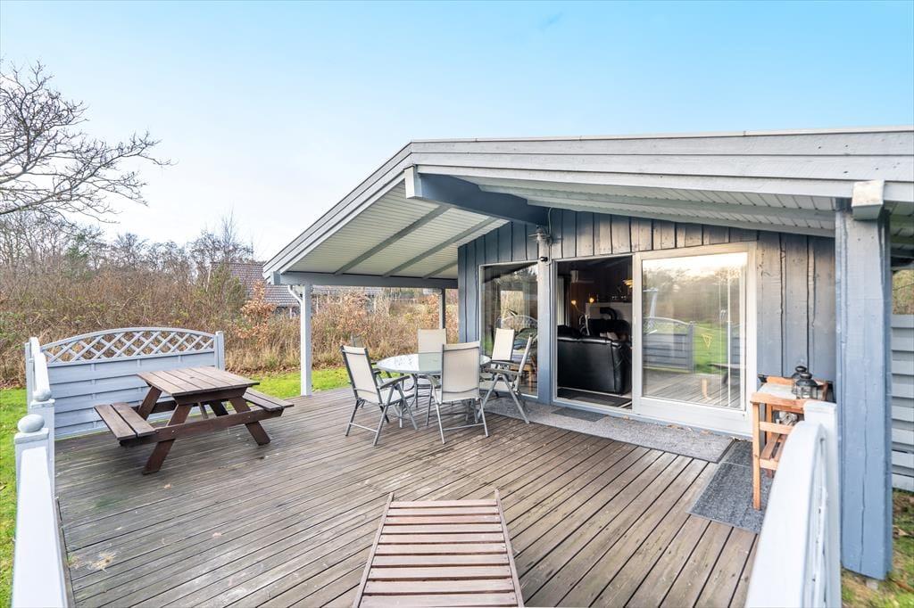 Udenfor venter den store, læfyldte naturgrund på over 2.000 m² – et fredfyldt fristed omgivet af træer og fuglefløjt. Her kan I virkelig mærke ferien sænke sig. På den sydvendte træterrasse finder I et skønt sted til morgenkaffen i solen, frokost i det fri og lange grillaftener under stjernerne. Om morgenen dukker solen frem på den østvendte terrasse, hvor dagens første stråler kan nydes i ro og mag. Haven indbyder til leg, boldspil og udeliv – og de firbenede gæster vil elske at have så god plads at boltre sig på.