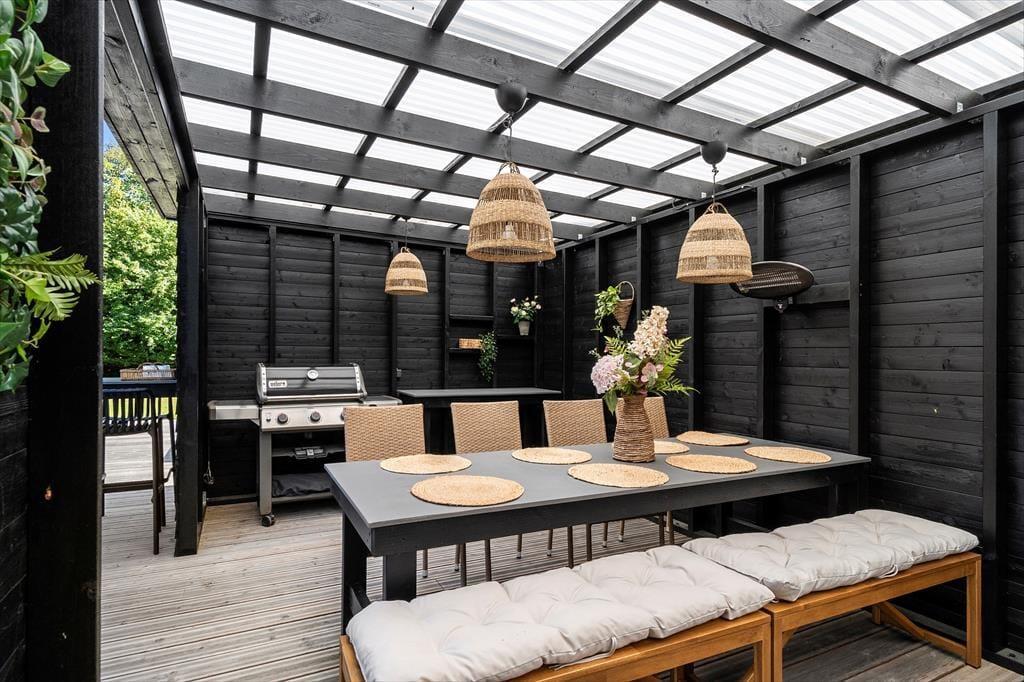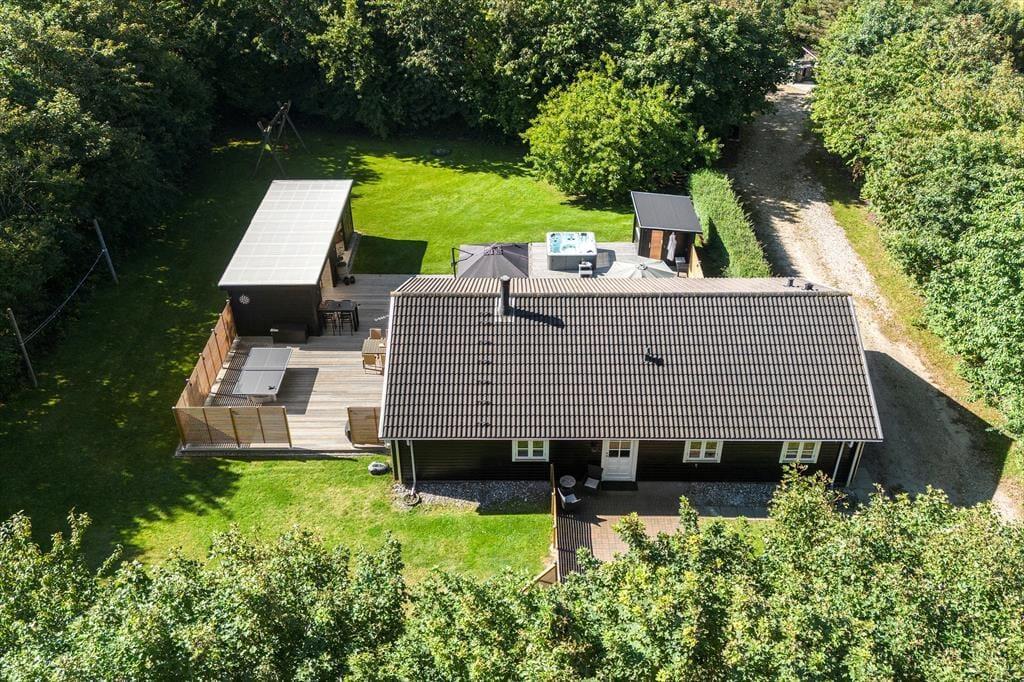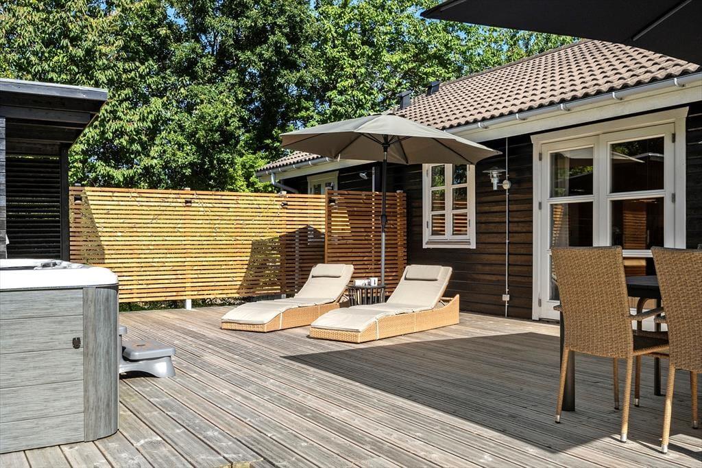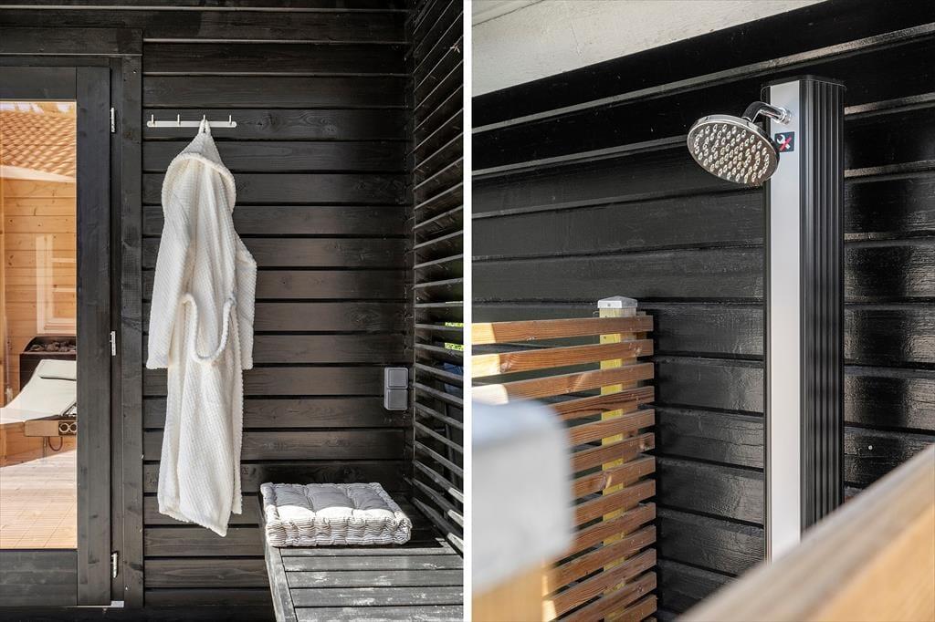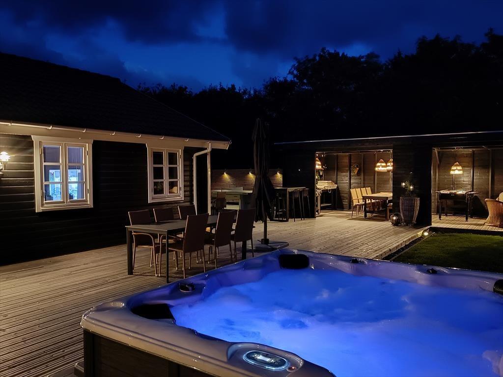 Det er udenfor, at Fyrrealle 3 for alvor folder sig ud som et ferieparadis. Her kan I nyde livet på en fuldstændig ugeneret grund med flere dejlige terrasser, hvor der både er plads til leg, afslapning og forkælelse. I det store udendørs wellnessområde finder I en opvarmet spa til seks personer, sauna og solopvarmet udebruser – den perfekte kombination efter en tur i Vesterhavet. Under det overdækkede loungeområde kan I trække i skygge, spille bordfodbold eller tilberede aftensmaden på gasgrillen, mens duften af sommer breder sig. På den anden terrasse kan der spilles bordtennis og dart, og børnene kan more sig på den dobbelte gynge i haven. På den indhegnede grund vokser både blommer og mirabeller, som I frit kan nyde i sæsonen – en lille smag af den danske sommer lige uden for døren.