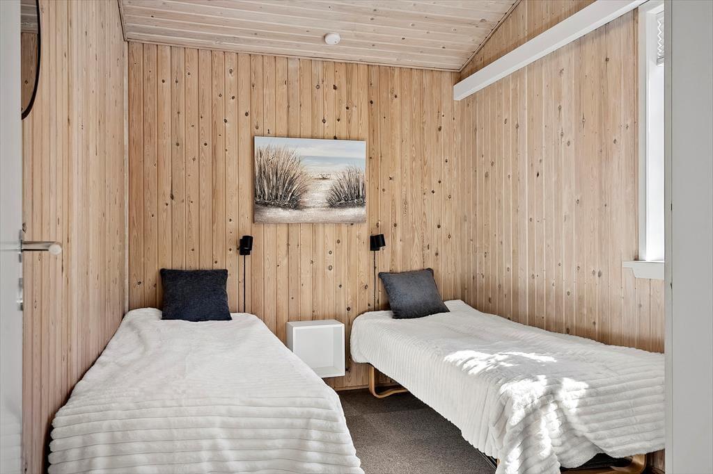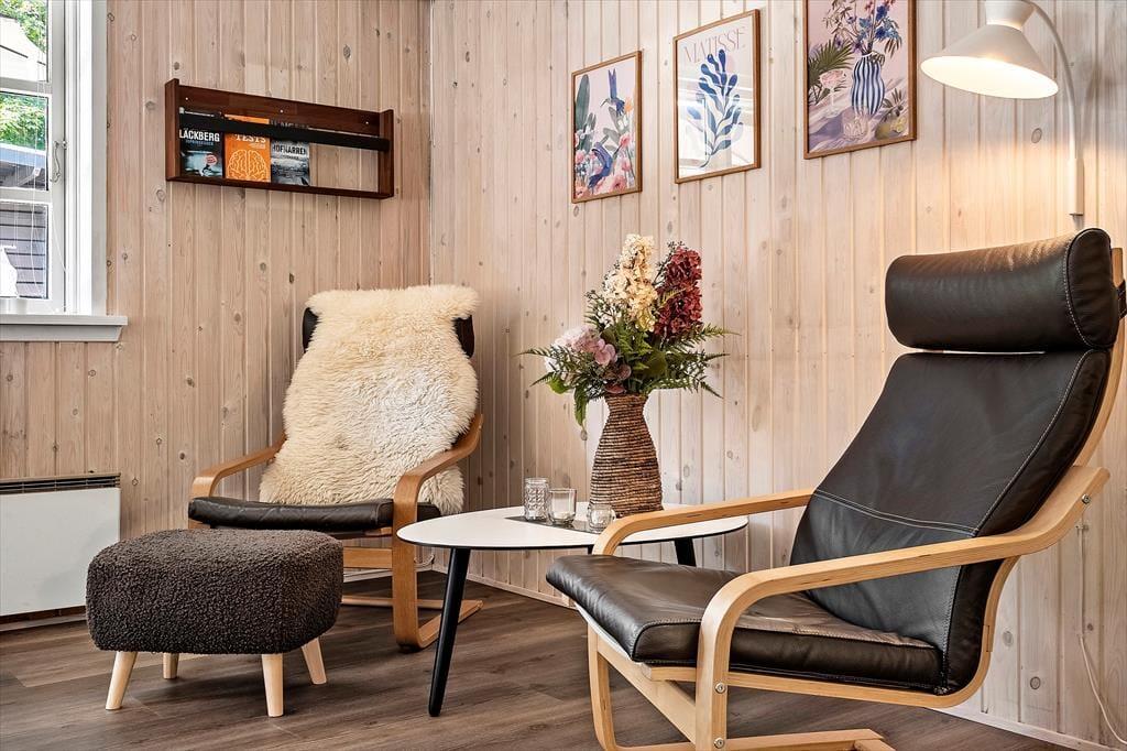 Træd ind i et lyst og indbydende sommerhus, hvor hygge og velvære går hånd i hånd. Den store stue indbyder til fælles stunder omkring brændeovnen eller foran det store tv, mens dagens oplevelser vendes over et spil eller en kop varm kakao. Herfra er der åben forbindelse til det moderne køkken, hvor madlavningen let bliver en hyggelig del af samværet. Hele huset fremstår som nyt efter renoveringen i 2024–25, og det mærkes i både indretning og atmosfære. De fire soveværelser er indrettet med rolige farver og bløde tæpper, der gør det rart at stå ud af sengen en tidlig morgen. De to badeværelser med bruser og gulvvarme gør det nemt for alle at få en frisk start på dagen, inden I begiver jer ud i ferieeventyret.